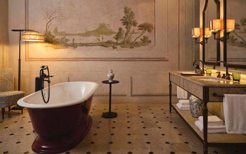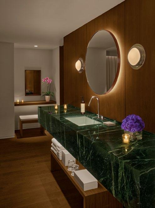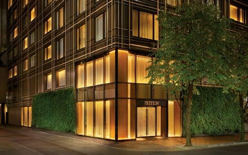 Tokyo’s high-end neighborhood of Ginza is a striking mix of old-world elegance and cutting-edge design, with the EDITION hotel firmly representing the latter. This softly minimalist building is the refined creation of renowned architect Kengo Kuma. As you enter the twostory lobby of this 86-room hotel, you’ll be hit by the dramatic floating white staircase. Up in the rooms, there are warm walnuts contrasting with white walls and bathrooms with sensuous slabs of green marble. The Punch Room bar and the hotel’s restaurant Sophie are cozier, with soft furnishings in bright royal blue and chartreuse. In the bar, try the Kappa & Yuzu cocktail (doburoku, tequila, yuzu, cucumber, and vanilla tea) or their take on an old -fashioned (bourbon, matcha, kuromitsu, peach, and bitters). It might feel perverse to eat a French dish in Japan, but the bouillabaisse in Sophie’s will blow you away. There’s a 24-hour Technogym-filled gym, and although there’s no spa or pool, you get access to the facilities at their sister hotel, the Edition Toranomon. editionhotels.com/tokyo-ginza