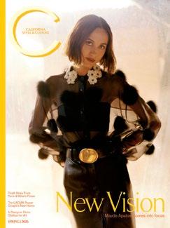 Photographer Chantal Anderson — who shot our cover story on actor and director Maude Apatow, “Unapologetically Maude,” p. 68 — documents cutting-edge pop culture for the New York Times and Vogue. Her directorial debut, Migratory, won best cinematography at the Milano Fashion Film Festival. She has been recognized by the Art Directors Club Young Guns and was named one of Photo Direct News’s “30 Photographers to Watch.” MY C SPOTS Antiques stores and cocktails in Nevada City • The foggy coastline at Point Reyes National Seashore • A Palm Springs sunset architectural tour by bike.