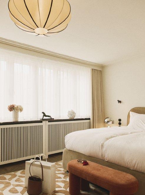 Copenhagen has long been at the forefront of cool Scandinavian design, but the new 109-room HOTEL BELLA GRANDE feels extra special. The 1899 building’s vanilla facade and butterscotch awnings invite you inside, where the interiors are relaxing and creamy, with accents of rich reds and browns across the tiling, upholstery, and textiles. Contemporary touches include Tom Dixon lamps, Polspotten side tables, and bespoke vanities made by Københavns Møbelsnedkeri. Owners Cofoco (Copenhagen Food Collective) and design firm the Tonen Agency took inspiration from a visit to a Venetian palazzo and its open-air courtyard, and the Italian feel is matched by its lively restaurant, Donna, which spills from the dining rooms into the atrium. No matter how much burrata, ravioli, and Milanese chicken you eat here, you cannot miss their showstopping dessert: a generous pavlova with lashings of cream, berries, and strawberry sorbet. The restaurant is a visual treat too, with a blood red ceiling and luscious pink curtains. There’s also a chilled cocktail lounge to retire to later in the evening. hotelbellagrande.com.