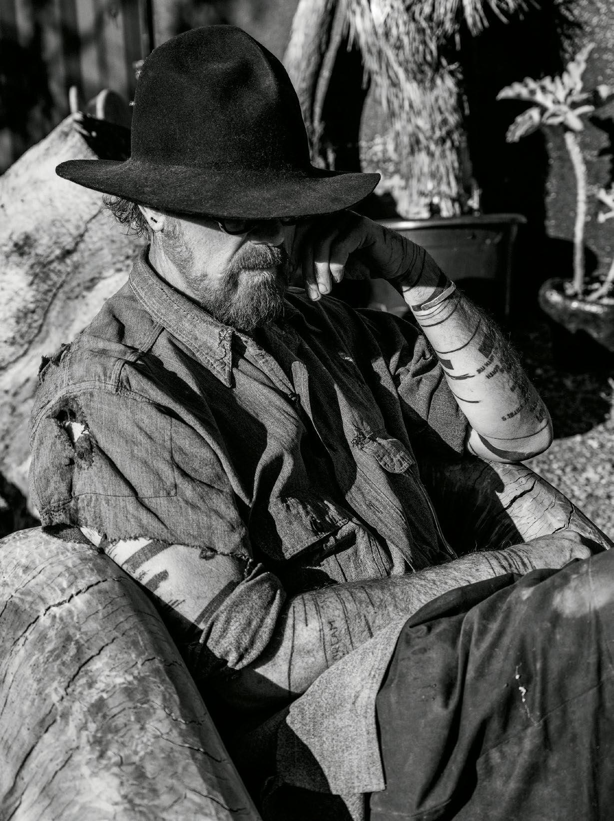 “In New York, I was really obsessed with flat black paint. The house, my car, everything was covered in it. It was a palate cleanser. It would calm me down,” he says. “But out here, I don’t feel the same urge to do that. The city wasn’t good for me. It’s so vertical — all the concrete and hard surfaces are so abrasive. I loved the energy when I was young, but today this is what I need. Even though it’s messy and rough in the studio, it makes me feel something that’s good. And I think that’s got to be the objective of art.”