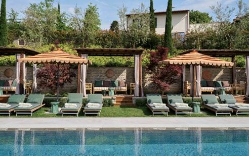 of the 16th-century Collegio’s light-filled suites; find time for an indulgent soak in the enormous bathrooms; take time out from tours of the Duomo, the Uffizi, and the Ponte Vecchio to lounge by the hotel’s clubby poolside and relax in its shady gardens.