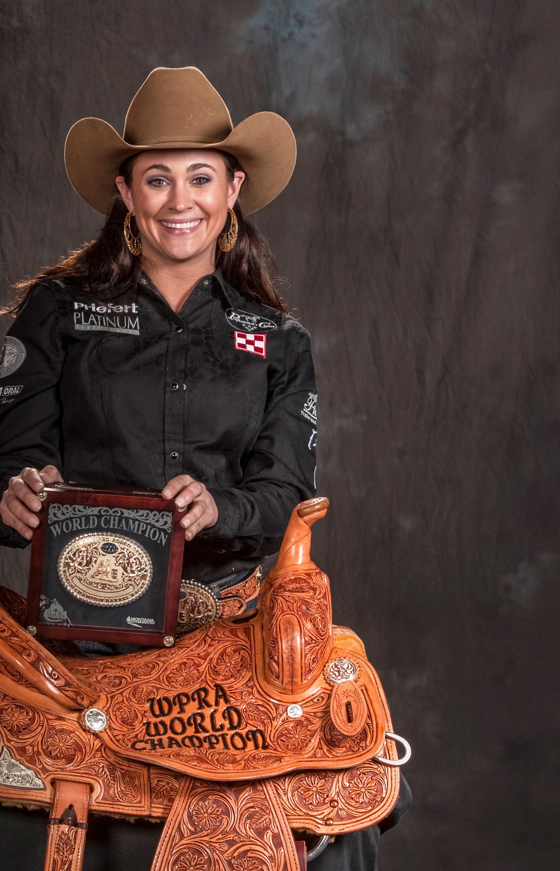 In early August, she and Benny won Dodge City, and in mid-August, she took her second championship win at the Caldwell Night Rodeo with a total of 50.90 seconds in three runs. That event added $10,068 to her bottom line and rolled her over the $200,000 mark, pushing her into the second-highest regular-season earnings in the WPRA’s history. She’s also cumulatively won more money at the rodeo than any other contestant to date.
