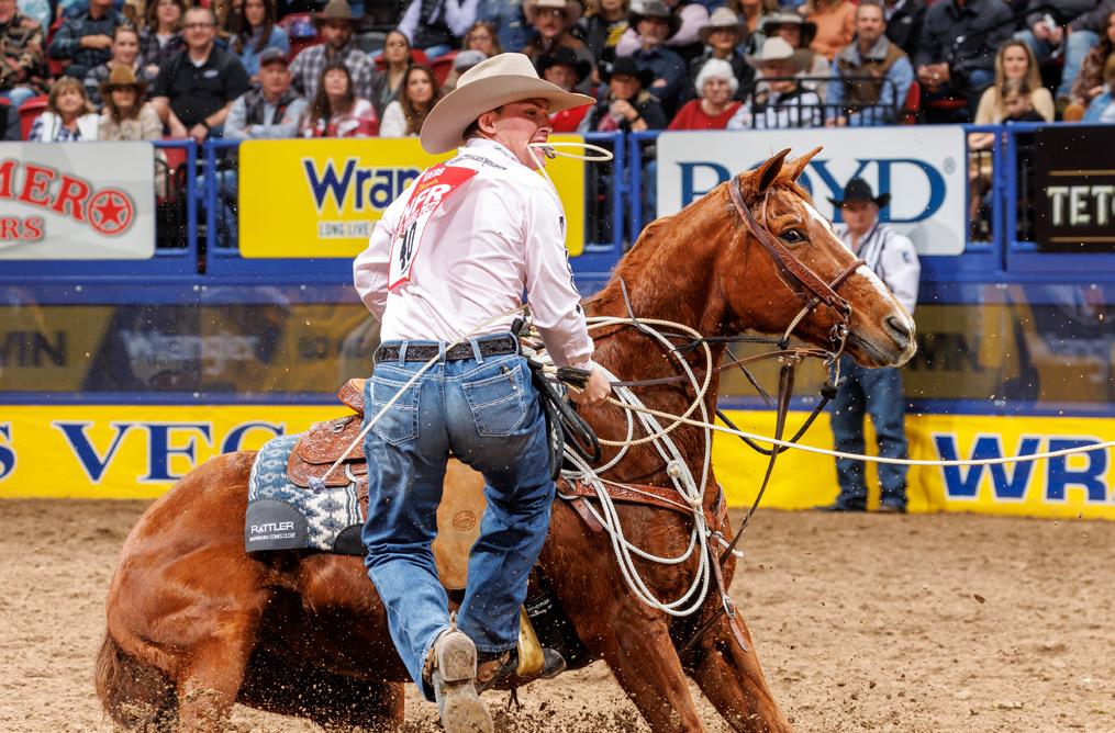 It may be an all-out war between top-ranked Sage Newman, second-ranked Stetson Wright, and thirdranked Zeke Thurston, as less than $15,000 in earnings stands between the three as they duke it out for their spot at the top of the earnings leaderboard. Two-time NFR qualifier Newman, whose earnings of $215,613 put him at the top of the saddle bronc rankings, placed fifth in the World Standings last year and seems hungry to claim that top spot this time around with wins at RodeoHouston, the Cody Stampede, and New Year’s Eve Buck and Ball in Gillette, Wyoming. But he will have to fight to stay ahead of Wright, who comes from a legendary family of saddle bronc riders, and Thurston, who holds three World titles.