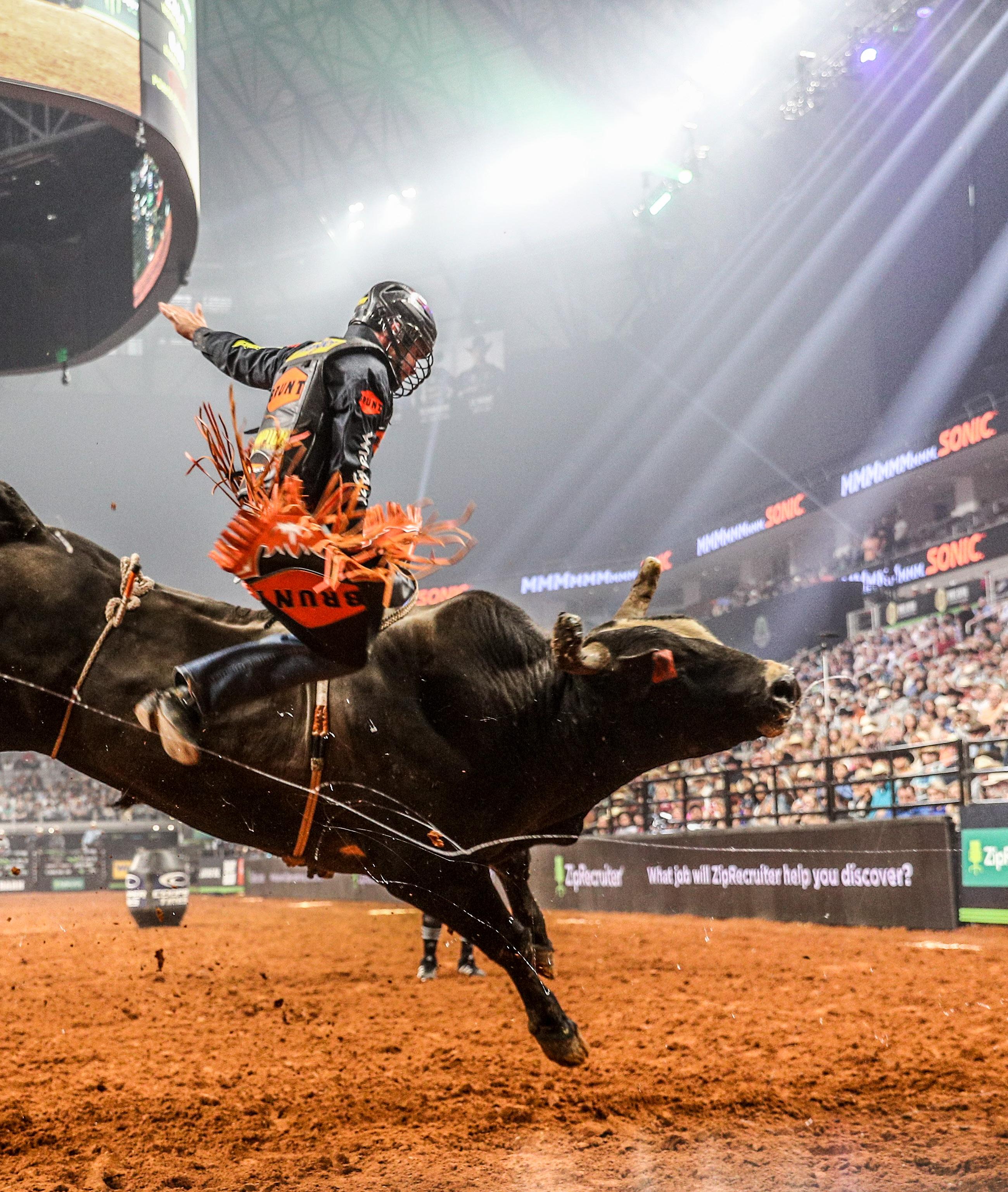 Each homestead event consists of three games on three different days, while the events in Cheyenne and Anaheim feature only eight games throughout two nights. Each game consists of five head-to-head matchups. One rider from each team rides a bull for each matchup, and the rider with the higher score on the PBR’s 100-point scale wins the matchup. The team with the most wins in a game wins the game, and the team’s record at the end of the event determines the