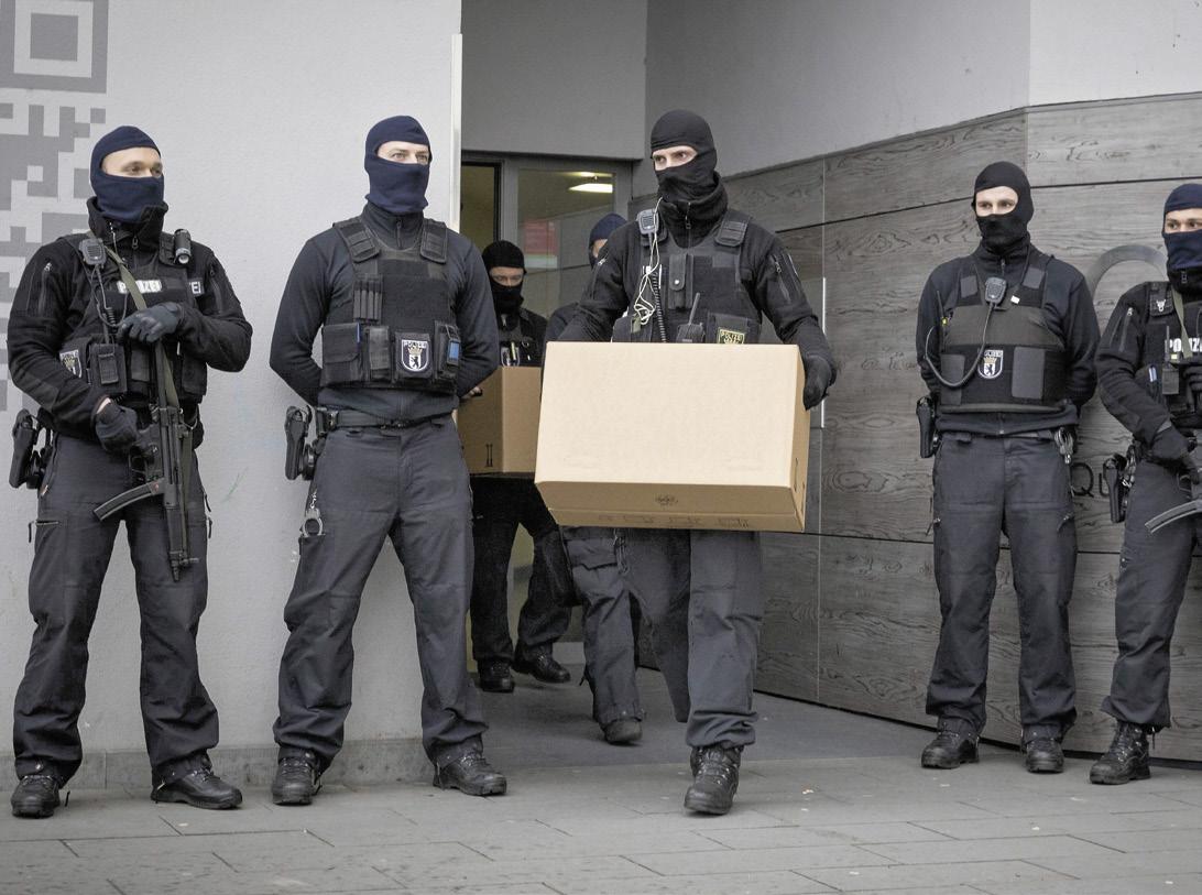 Polizisten sichern bei Durchsuchungen Beweismaterial
