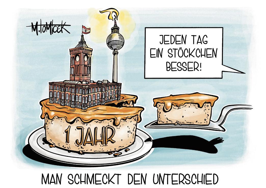 Wegner: Ich glaube, es gibt nicht den einen größten Moment oder den größten Erfolg. Es geht darum, dass diese Stadt an sich jetzt schon viel besser funktioniert als noch vor einem Jahr. Nehmen wir beispielsweise das vergangene Silvester. Die Ausschreitungen blieben nahezu vollkommen aus. Wenn wir über das Thema Bauen sprechen, sorgen wir mit der Novelle der Bauordnung und dem Schneller-Bauen-Gesetz, dass bezahlbarer Wohnraum schneller entsteht. Wir werden die U- und S-Bahnen ausbauen und dafür sorgen, dass die Außenbezirke eine bessere Anbindung bekommen. Wir haben 100 neue Stellen für die Bürgerämter beschlossen, davon sind jetzt schon 80 besetzt; zwei neue Standorte für Bürgerämter kommen hinzu. Und wir bieten mehr Dienstleistungen digital an. Das sind nur wenige Beispiele, an denen man sieht, wie sich Berlin im vergangenen Jahr zum Besseren verändert hat. Und wir haben noch sehr viel vor.