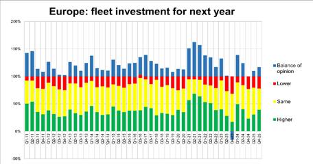 The results for multinational companies were mixed: above average when it comes to looking 12 months ahead 61% expect conditions to be better - and also positive on the trend for fleet utilisation. However, the biggest companies were also the least likely to increase investment in 2026 and among the least likely to be increasing their workforce.