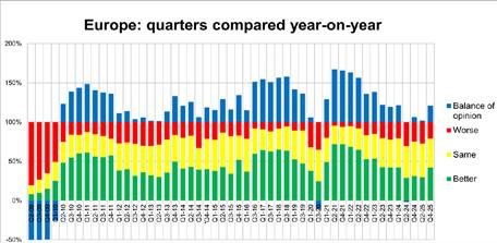 Sometimes positive sentiment reflects an improvement on a dire situation, but in the case of Italy and Spain the Q4 results follow similar levels of confidence from the Q2 survey earlier in 2025. There is a sustained level of confidence in these markets.