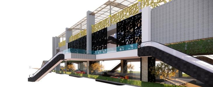 Pada eskalator yang terdapat pada sisi sisi bangunan di pergunakan untuk pengunjung memasuki bangunan Terpadat 6 titik eskalator. Untuk mengurangi adanya Antrean kepadatan pengguna.