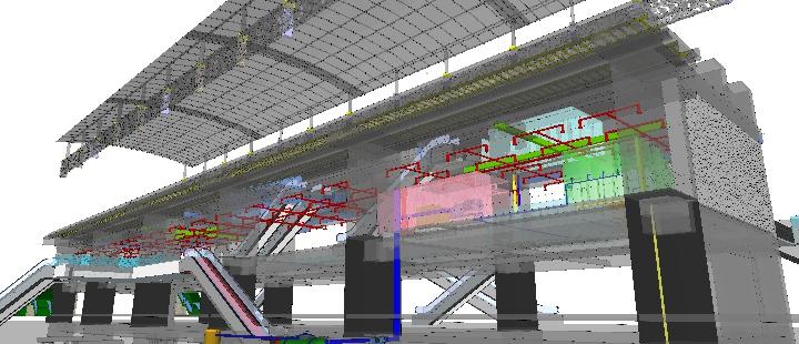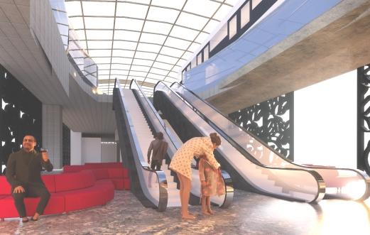 Eskalator pada area dalam bangunan menggunakan eskalator dengan type twin. dengan ketinggian 5 meter