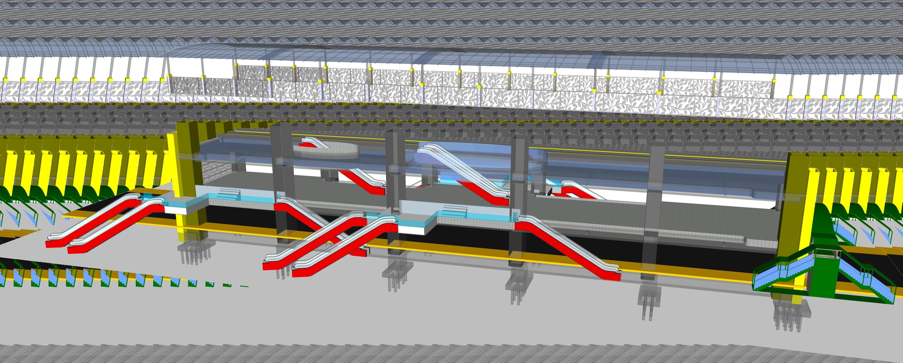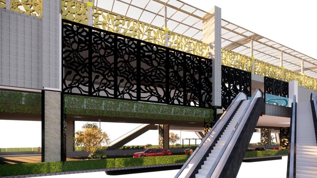 Pada eskalator yang terdapat pada sisi sisi bangunan di pergunakan untuk pengunjung memasuki bangunan Terpadat 6 titik eskalator. Untuk mengurangi adanya Antrean kepadatan pengguna.