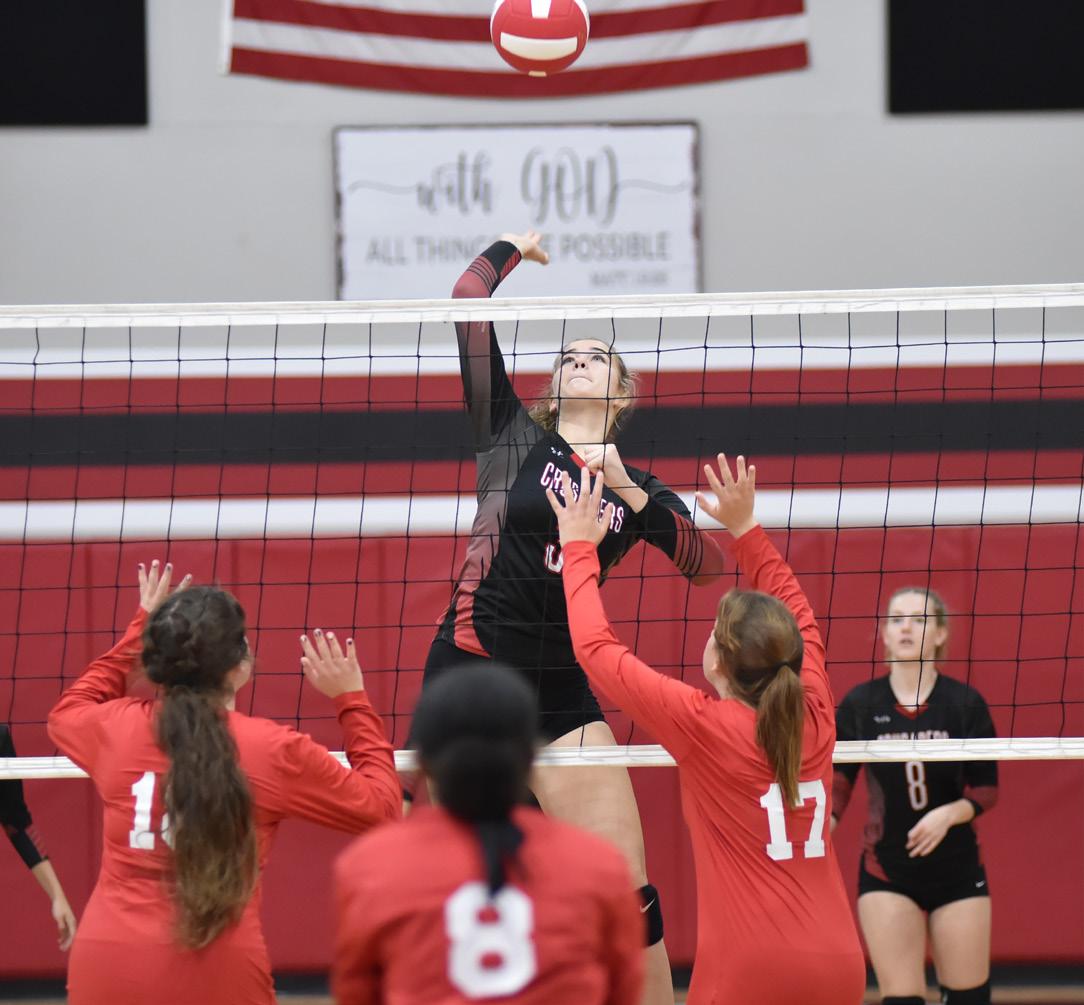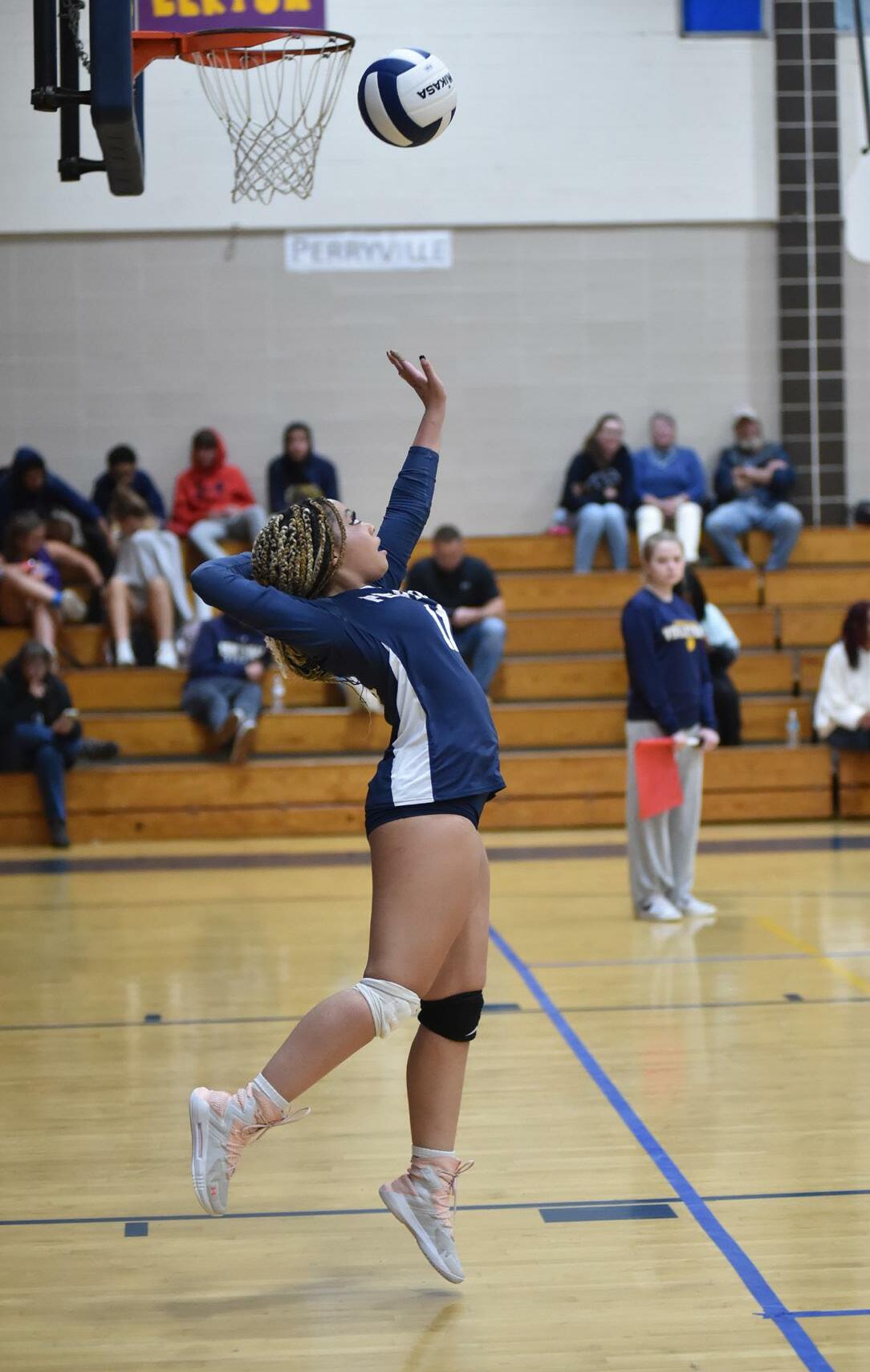 Grove 1 TS: J. Harris 8 kills H. Pfadt 3 aces, 7 kills B. Thomas 5 aces, 23 digs, 5 kills S. Henry 13 assists, 12 digs T. Davis 14 digs E. Harris 1 block, 5 kills