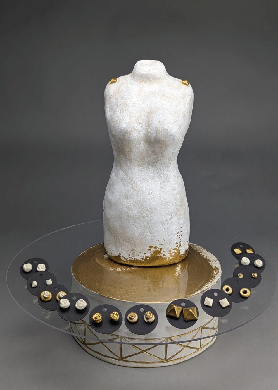 Christine Song is a fashion design student. She has recently gotten “into the world of ceramics,” and draws inspiration from “the Bible, nature, literature, and the connections in everyday relationships.” Her two pieces Rose of Sharon and Jacob’s Ladder reflect her inspiration to mix “functionality with artistic expression to transfer meaningful stories.”