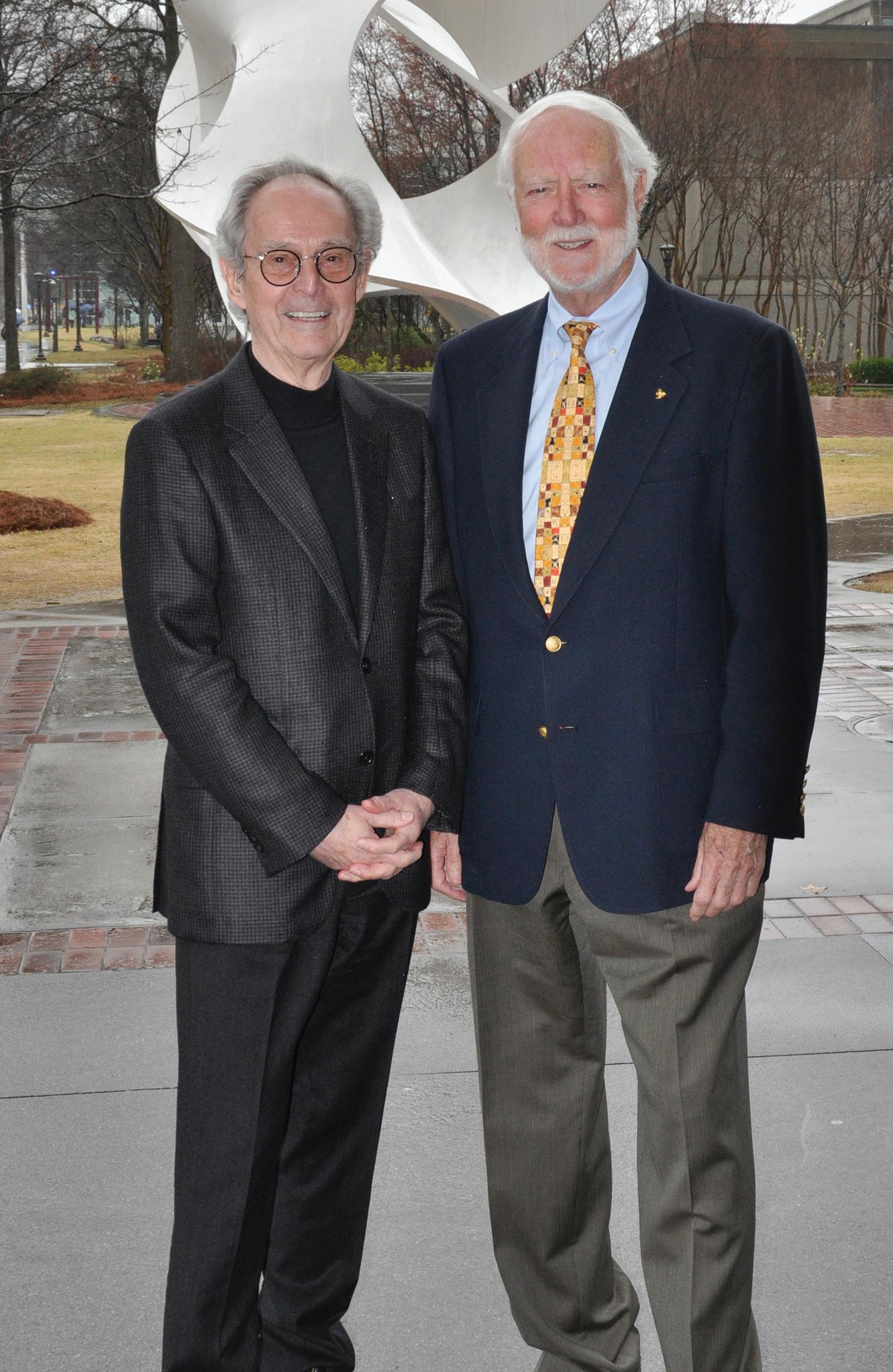 1. Reid Cabe, left, and Madeline Sanders accept the Zeitliin Award check from Karen and John Huff School Chair Don Webster.