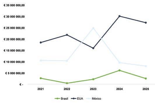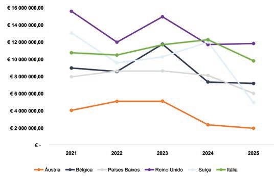 EVOLUÇÃO DAS EXPORTAÇÕES PARA PAÍSES EUROPEUS (EXCETO RÚSSIA)