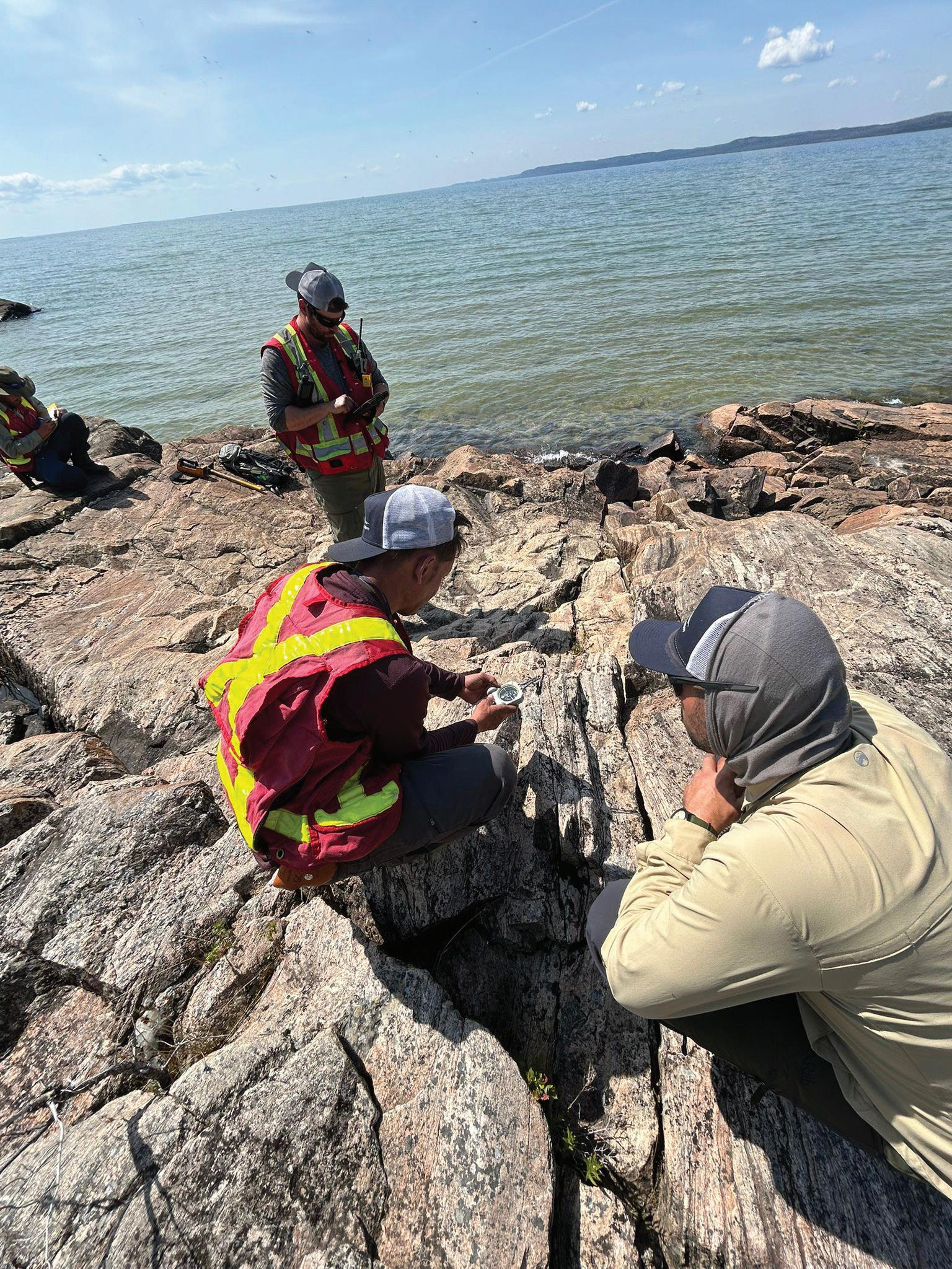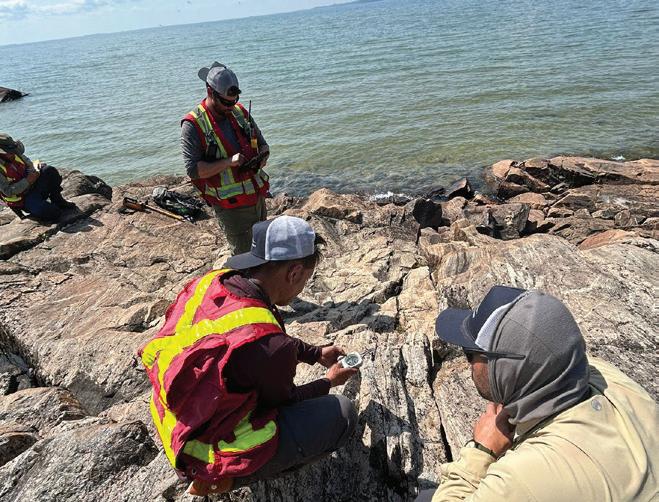 FIGURE 2 Geologists from the Alberta Geological Survey collecting outcrop data from the Canadian Shield in northeastern Alberta, summer of 2025.