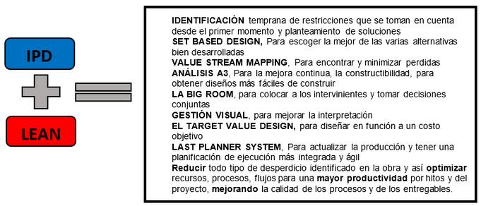 El IPD está orientada a la mejora de la gestión de los proyectos de construcción, por lo que opta por sistemas que generen valor al mismo, se toma en cuenta principalmente la inclusión precisa del BIM y LEAN CONSTRUCTION para la planificación y ejecución conjunta.