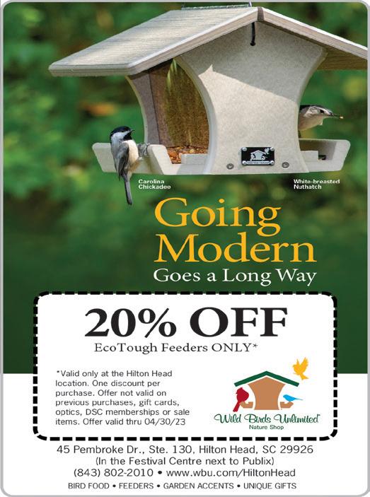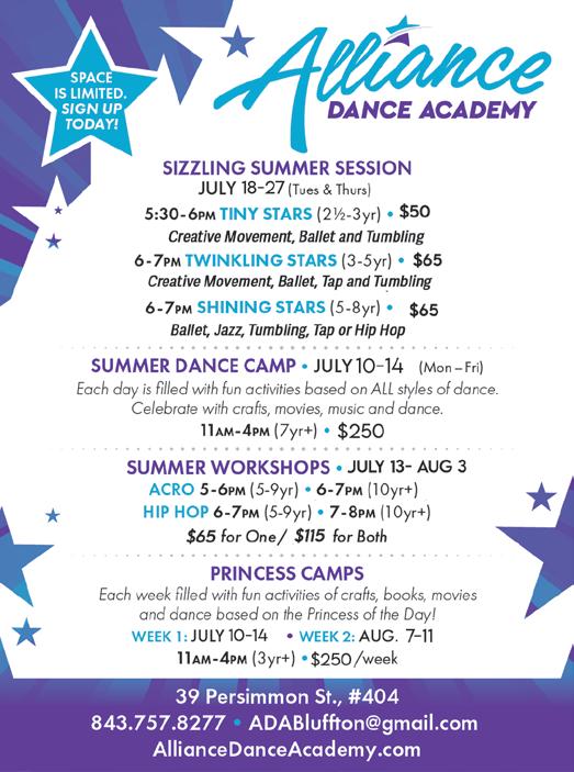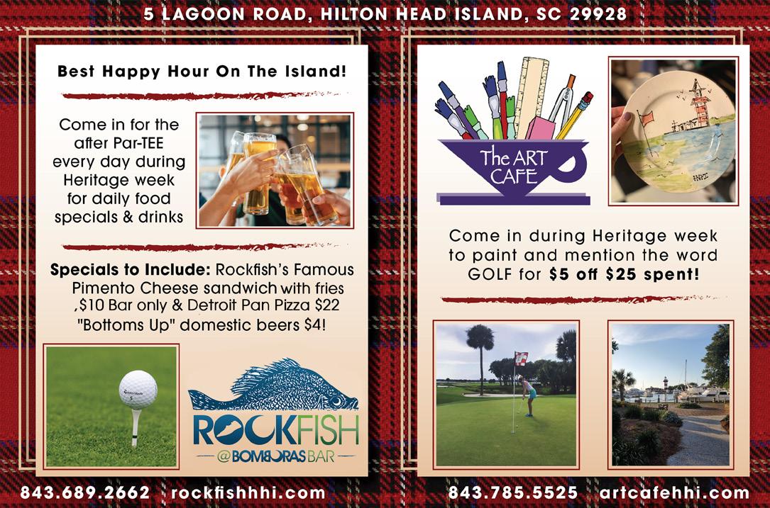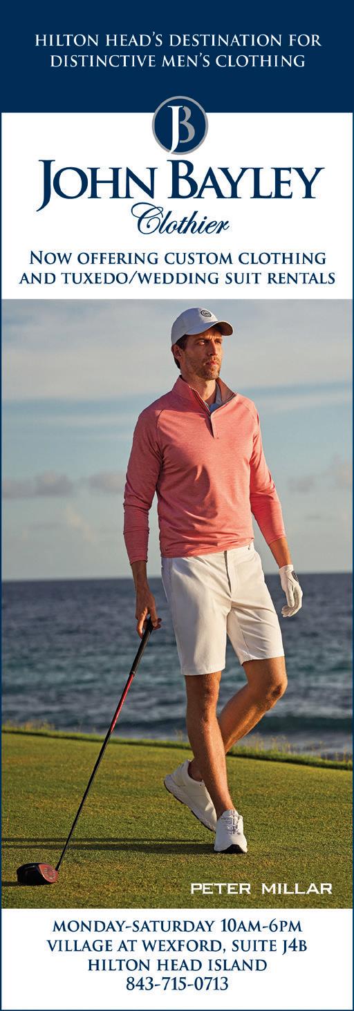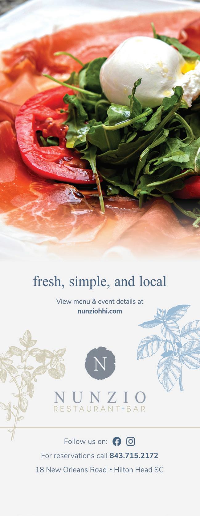 130 APRIL 2023 CH2CB2MAGAZINE.COM APRIL 2023 EVENTS 9 24 1 OLD TOWN BLUFFTON FARMERS MARKET Every Thursday 12-5pm Calhoun Street THURSDAYS 5 15 23 ROBERTO COIN / FORSYTHE JEWELERS TENT AT RBC HERITAGE Thursday - Sunday, April 13 - 16 Harbour Town Golf Links Shop Roberto Coin’s newest collections for spring during the RBC Heritage of Golf FARMERS MARKET AT HONEY HORN Coastal Discovery 9am-1pm TUESDAYS HILTON HEAD COMMUNITY MARKET Shelter Cove Community Park 9am-12pm EASTER EGG HUNT Gregg Russell Harbour Town Playground 11am Complimentary COOKING DEMO Alexander’s Restaurant 2-3pm New Orleans Muffaleta Sandwich SPRING MUSIC & TASTE ON THE HARBOUR Shelter Cove Harbour & Marina Thursdays ; Through May 18 April 6: Deas Guyz, April 13: Stee and the Ear Candy Band April 20: Target feat. the Headliner Horns April 27: Deas Guyz www.sheltercovehiltonhead.com/music-and-taste 29 22 SPRING SHOP HOP Village at Wexford 2-4pm Stroll your kids down the Village Bunny Hop Trail. 8 GREGG RUSSELL CONCERTS Liberty Oak Tree in Harbour Town April 3-7 and April 10-12, 7:30-9pm seapines.com/ events 3 THE GRILLED CHEESE CELEBRATION South Beach Starts at 12pm Let’s get cheesy! VIBERTI GIOVANNI WINE DINNER Alexander’s 6-8:30pm $135 per person (inclusive of tax & gratuity). EASTER EGGSTRAVAGANZA South Beach Starts at 10am No registration necessary HILTON HEAD HUMANE’S DOG WALK ON THE BEACH Coligny Beach 8:30am Pre-Registration Required LOWCOUNTRY LEGAL VOLUNTEERS WILD WOMEN’S TEA PARTY AN AFTERNOON AT TIFFANY’S Indigo Hall in Indigo Run from 2-4pm A perfect afternoon for you and your friends! BLUFFTON SUNSET PARTY 2023 Earth Day Kick Off Concert Event 5:30-9:30pm Bluffton Oyster Factory Park 21 RBC HERITAGE PRESENTED BY BOEING Harbour Town Golf Links #plaidnation 10-16 20 11 FREE GOLF DEMONSTRATION Palmetto Dunes’ Robert Trent Jones Course. Participate in a free golf clinic & demonstration at Palmetto Dunes’ Robert Trent Jones course every Monday from 4:00 - 4:50 p.m. PalmettoDunes.com/golf/golf-instruction.