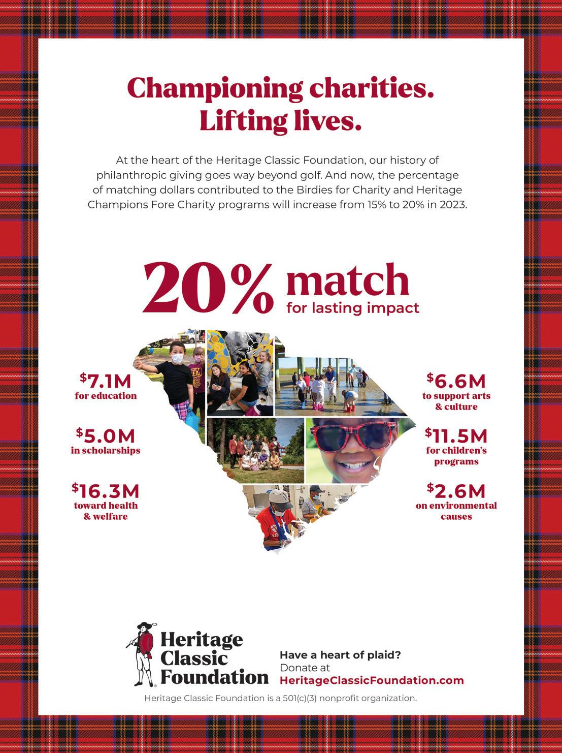 Beyond the economic impact, we are grateful for the generosity of the Heritage Classic Foundation, which contributes to the well-being of the greater Hilton Head Island community. It is exciting to see so many charities, organizations and citizens across the region receive benefits for education, healthcare, and other needs. Since 1987, the foundation has donated $50 million to charities in South Carolina and Georgia and $5 million to 375 high school seniors. Last month, 11 outstanding Beaufort County seniors became the newest Heritage Classic Foundation scholars for the 2022-2023 school year. The students come from seven different high schools, and one is home schooled.