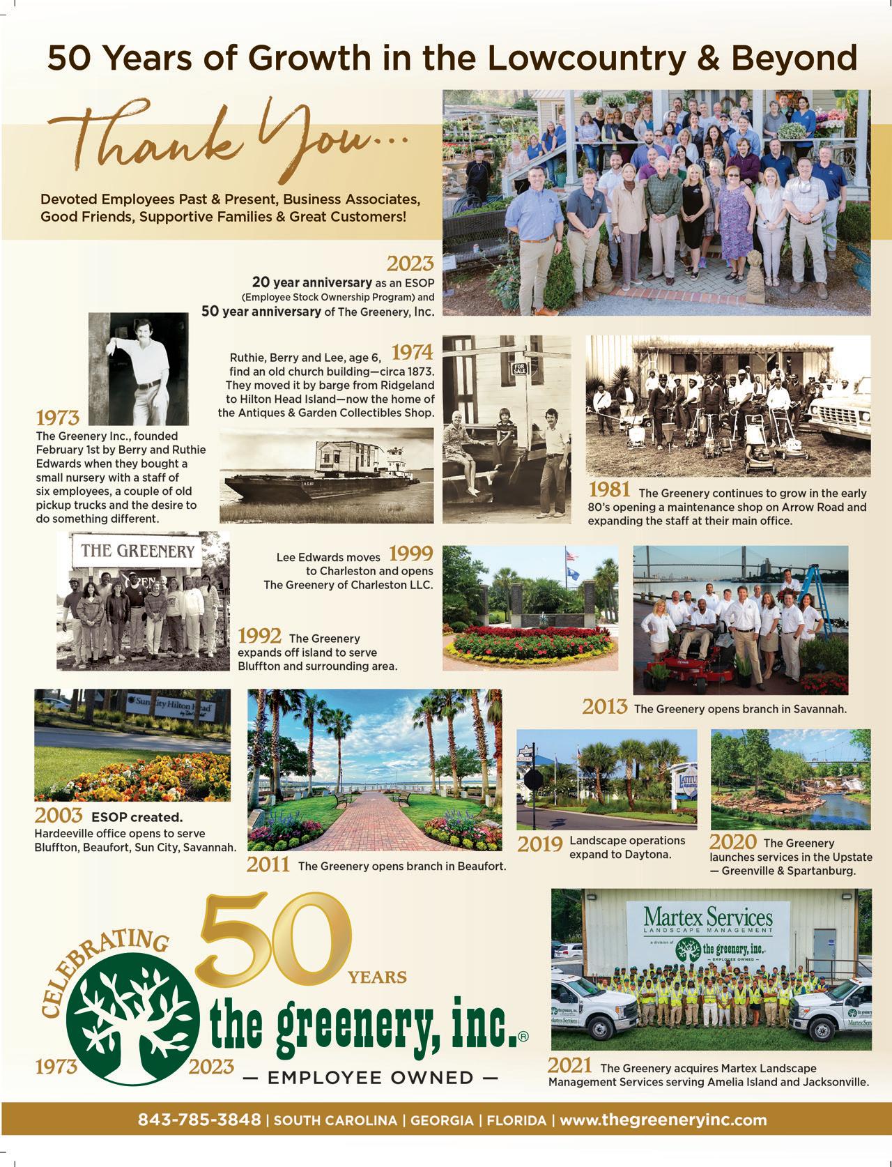 Two businesses featured in this issue are celebrating 50 years: The Greenery and CQ’s Restaurant in Harbour Town. Do you know what it takes to have a successful business for 50 years? I don’t because this little magazine has only been around for 16.