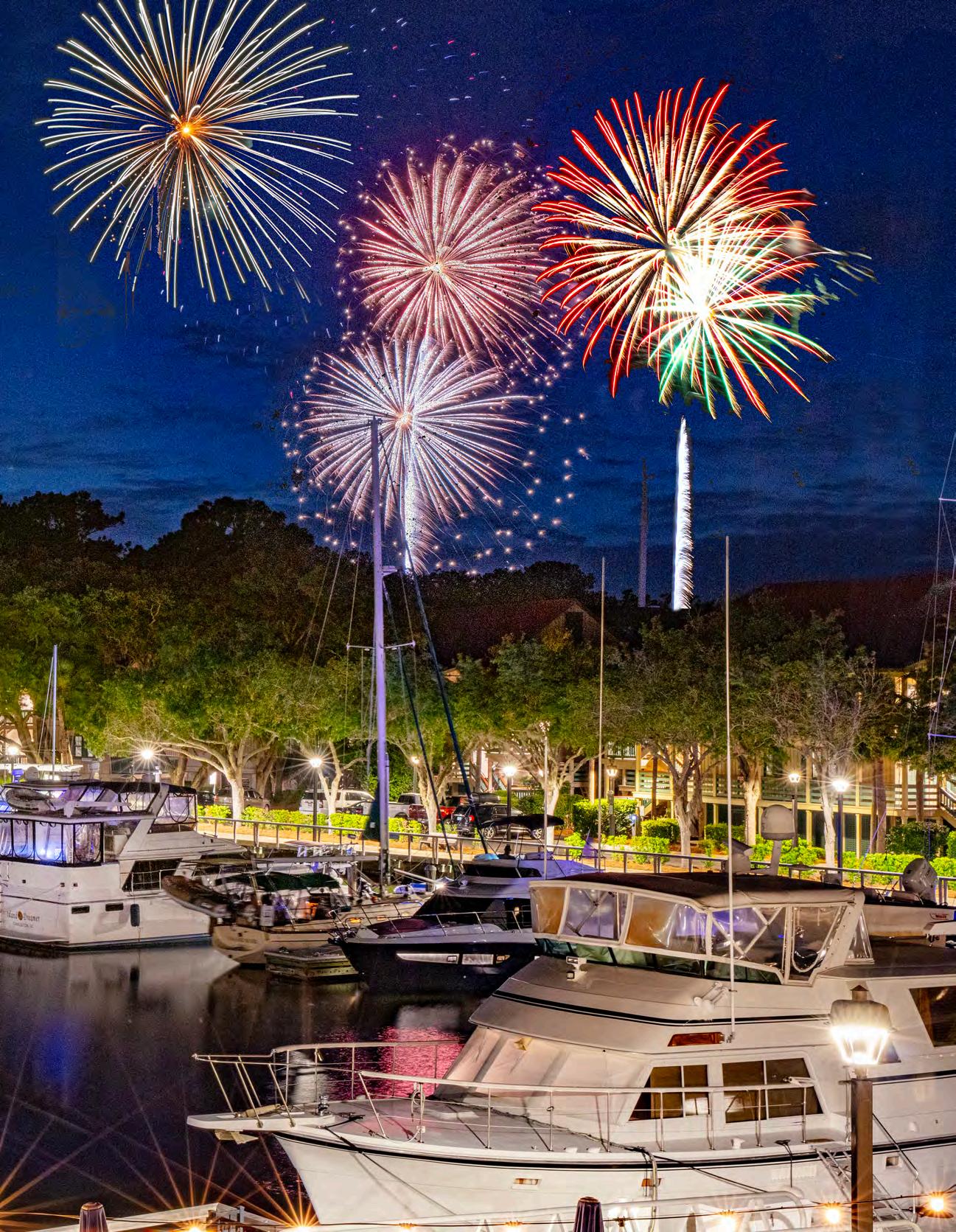 Departing from Shelter Cove Marina, each three-hour tour starts with a 90-minute Dolphin Eco Tour and ends with front-row seats for the fireworks display over the salt marsh of Broad Creek.