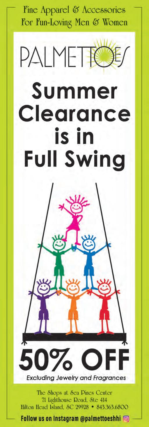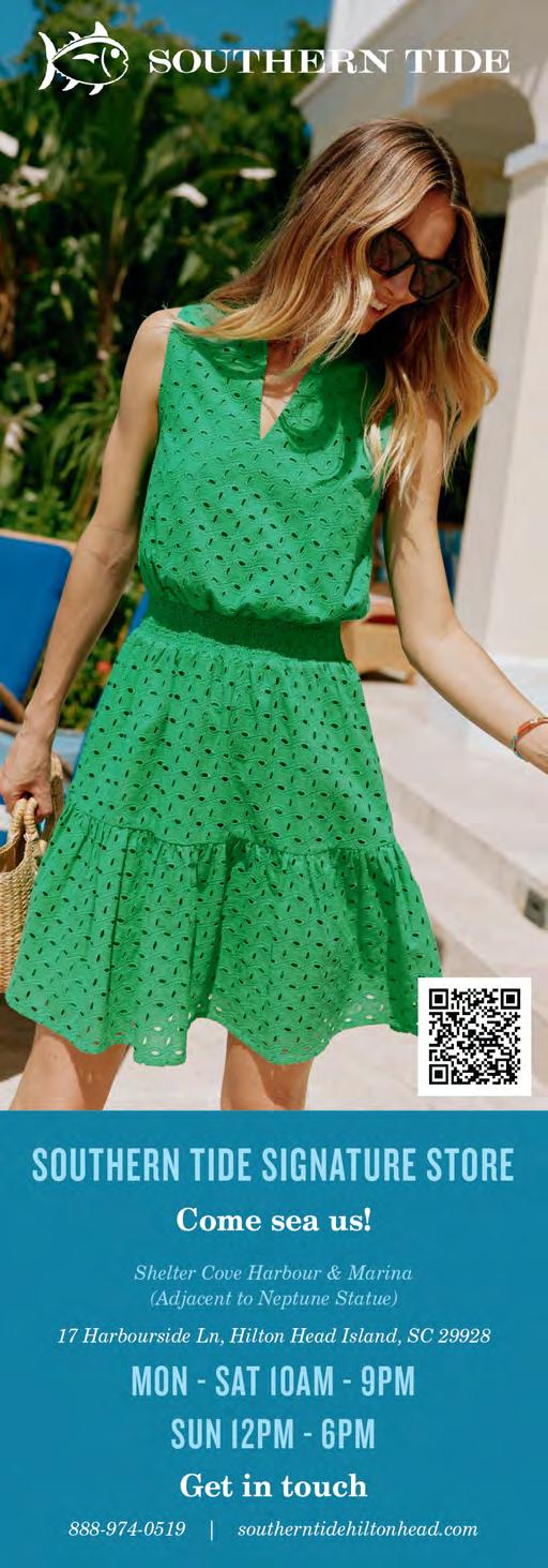 Our Neighborhood Stroll returns this month, with a feature on peaceful Callawassie Island. The Tiki Hut recently got a remodel and we’ve got photos of the stunning transformation and the grand opening festivities on page 74. Courtney and Barry take on the Man vs. Bear debate that’s been breaking the internet for a few months now, and we spend an evening at HarbourFest, now in its 35th year, eating Top Dawg pizza and listening to Shannon Tanner rile up the crowd.