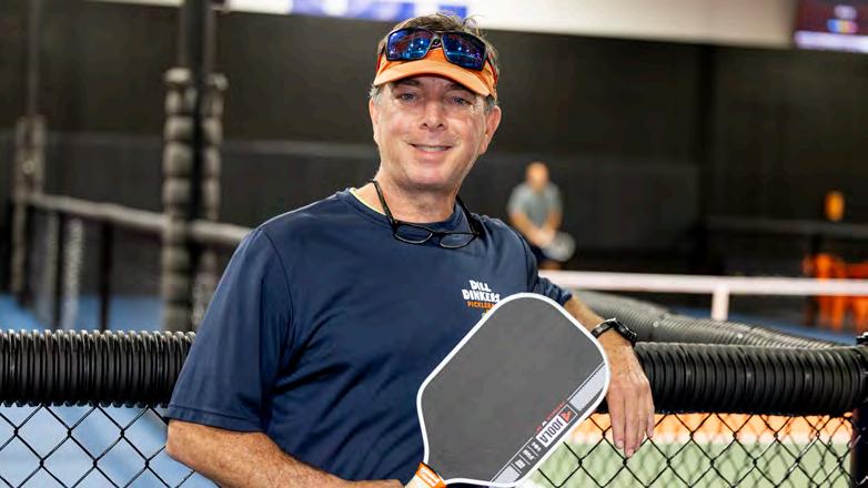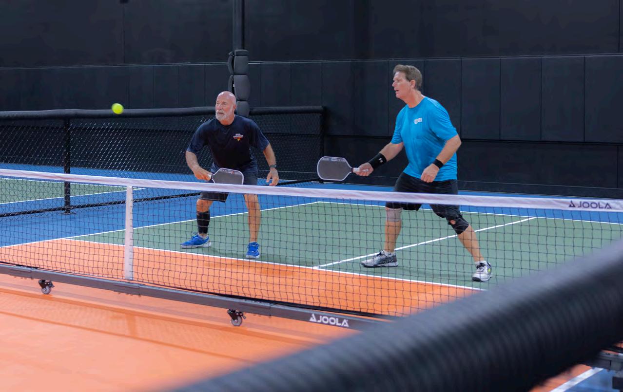 Judy Bastian and Trudy Chaille shoot a scene with Daly on the pickleball court.