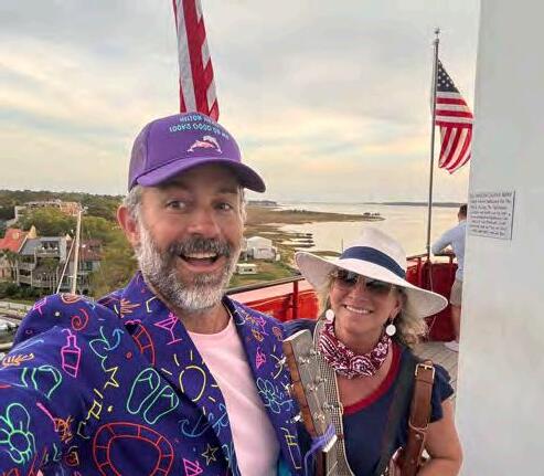 Jevon Daly and Maggie Washo end a 14-hour-day of shooting with the opening shot at the top of the Harbour Town lighthouse, thanks to Sea Pines Resort.