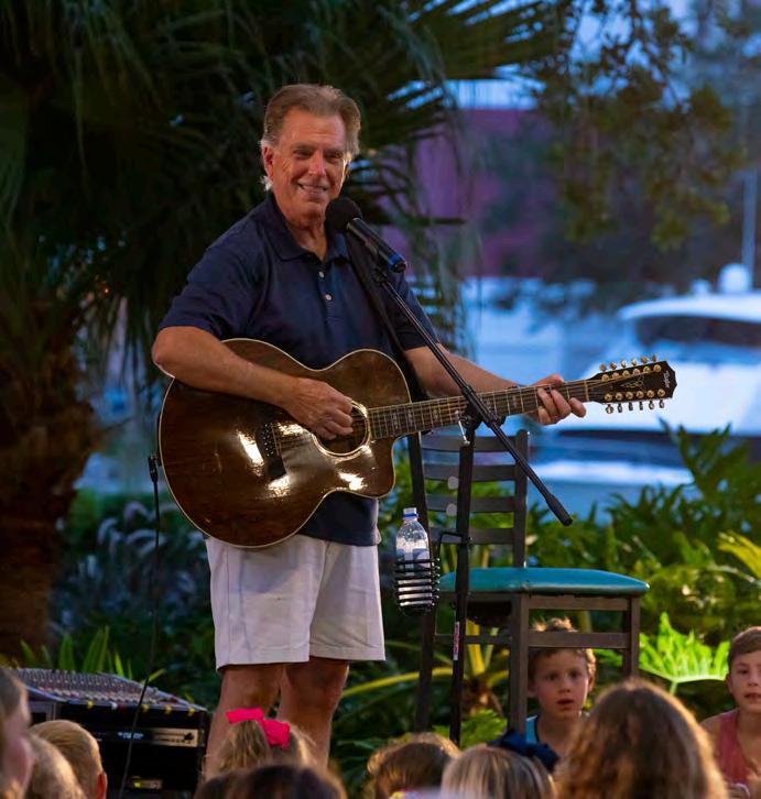A line in the song talks about seeing dolphins, so the CH2 crew teamed up with Byron Sewell to get this shot with some well-known locals and their kiddos. Pictured from left to right: Baby D, Lacey, Brienne and David Thornton, Daly, Roby Breger, Cameron, Charlie and Hank Shroeder hang out on Sewell's tiki boat in Shelter Cove Marina.