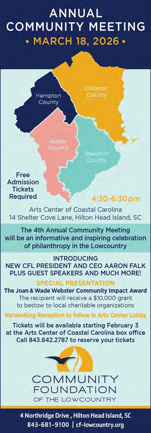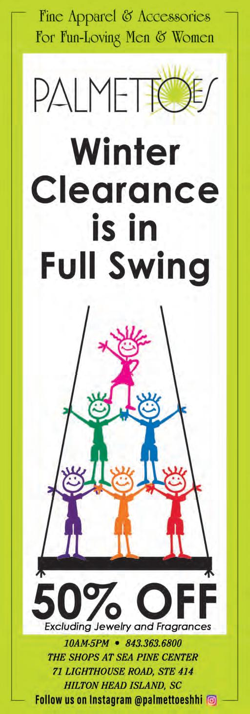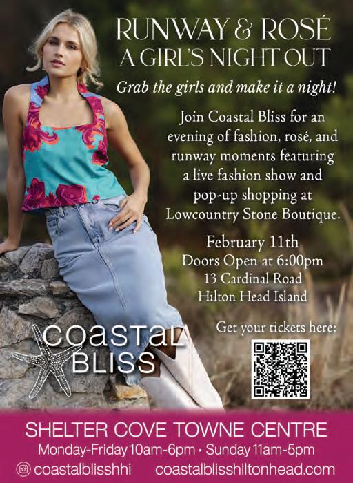 February kicks off the spring festival/ event season and we have features on Coligny Plaza’s Souper Bowl of Caring, Jerseys and Dresses, and, the fan favorite, the Hilton Head Seafood Festival. These tickets tend to sell out early so get them now. We’ll see you at the Pig Pickin’ at Honey Horn and the main event on Saturday.