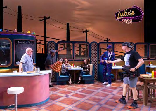 Next up on the first day’s shooting schedule was another landmark, the Arts Center of Coastal Carolina, where Daly, decked out in a bewilderingly purple suit, frolicked on the stage of “Waitress: The Musical.” While she had initially signed on just to let the C2 crew into the building, vice president of marketing Andrea Gannon found herself pulled into the shoot, playing a background extra.