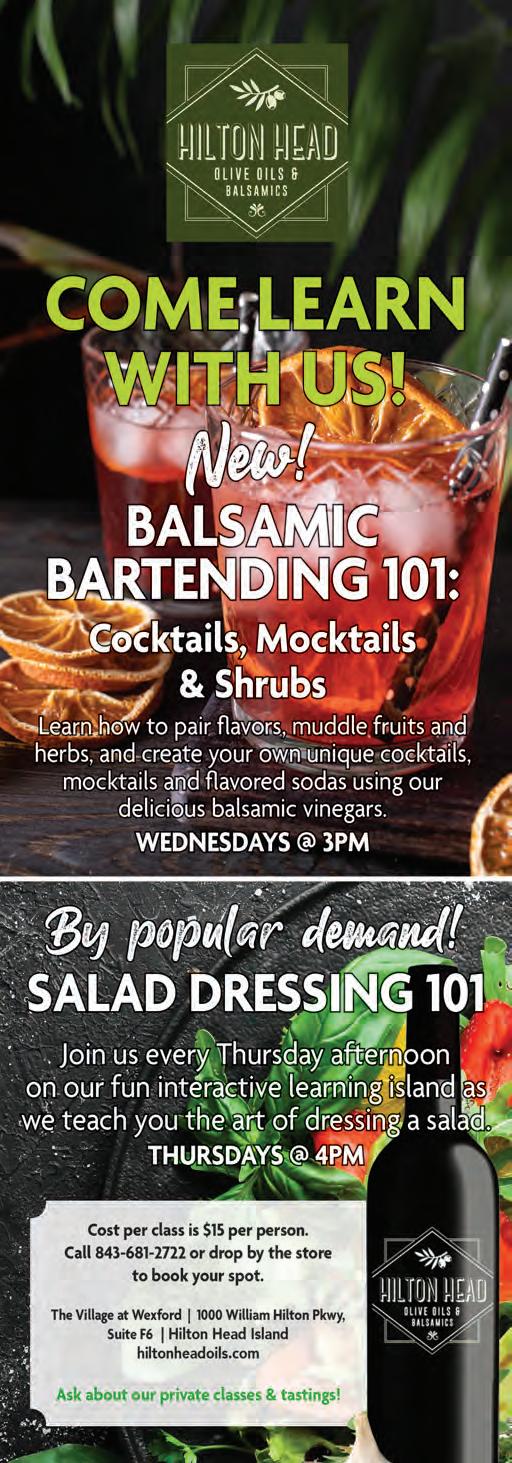 MAGIC ON THE MAY RIVER Special Home, Special Site, Special Community A WHOLE NEW ADVENTURE AT SHELTER COVE HARBOUR & MARINA 110 IT’S THE PEOPLE Celebrating Volunteers of the RBC Heritage 30 66 WHAT’S INSIDE 40 RECIPES FOR YOUR RBC HERITAGE PARTY 48 MUSINGS FROM ACROSS THE CREEK: THE FIRST DECADE OF THE ISLAND’S DEVELOPMENT 53 THE LOWCOUNTRY PRIMARY OWNER’S FAIRY TALE 56 PROPERTY MANAGEMENT PROFILES 76 BLUE CRAB: THE FRUIT OF THE VINE 80 A BLUSTERY DAY IN SHELTER COVE HARBOUR & MARINA: SASSY SPRING STYLES FOR YOUR NEXT NAUTICAL OUTING 100 LIKE AND SUBSCRIBE: PERSEVERING THROUGH TRAGEDY AND OTHER HARDSHIPS, REALTOR REINVENTS HIMSELF ON YOUTUBE 118 FRAME WORTHY: EYELAND OPTIQUE OFFERS WHITE-GLOVE EYEWEAR AND EYE CARE EXPERIENCE 112 TRUFFLES: GREAT FOOD FOR GENERATIONS, NOW WITH A NEW VIBE ON OUR COVERS ON THE CH2 COVER Lola Campbell models an ensemble from Collage at Shelter Cove Harbour & Marina BURGERLICIOUS AT FRASER’S TAVERN 141 ON THE CB2 COVER Kandace Wightman is photographed in an ensemble from Haskins & Co.