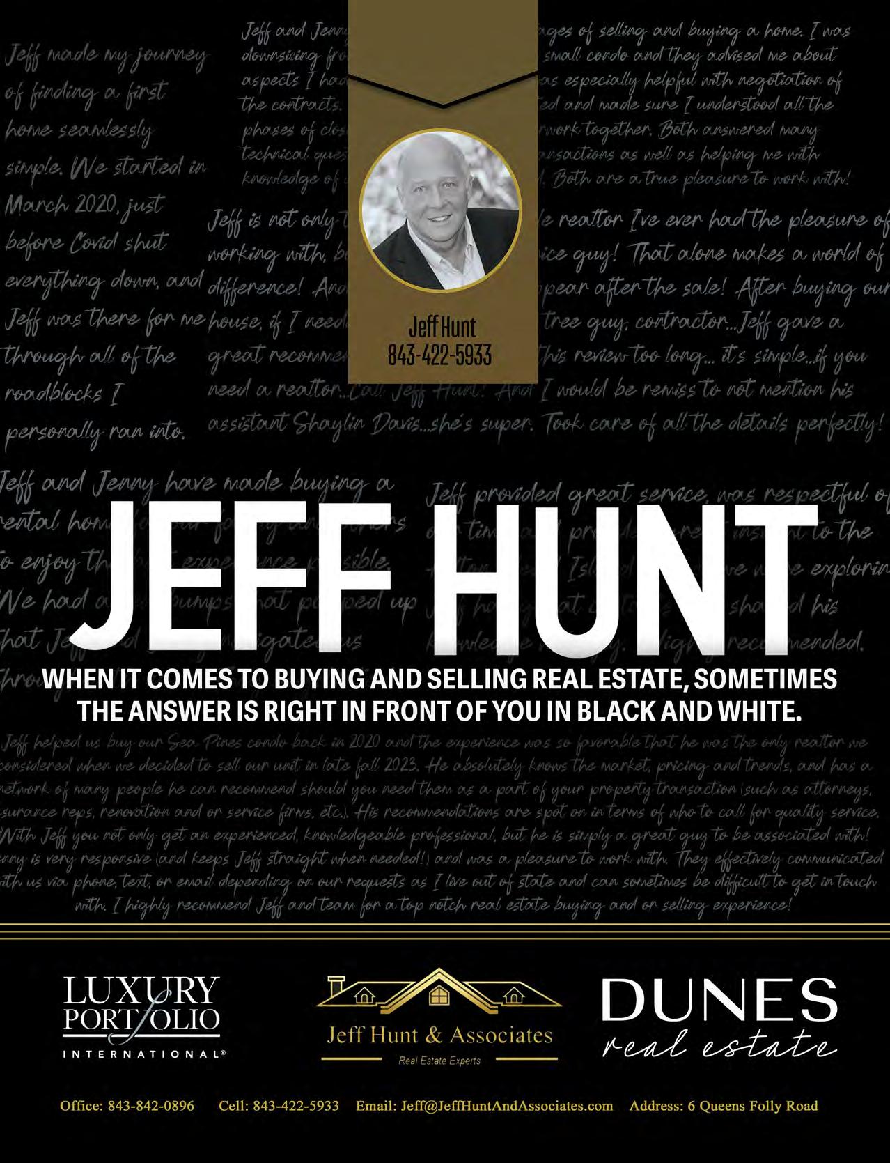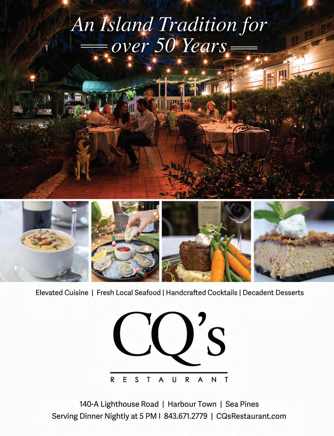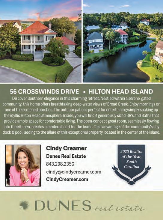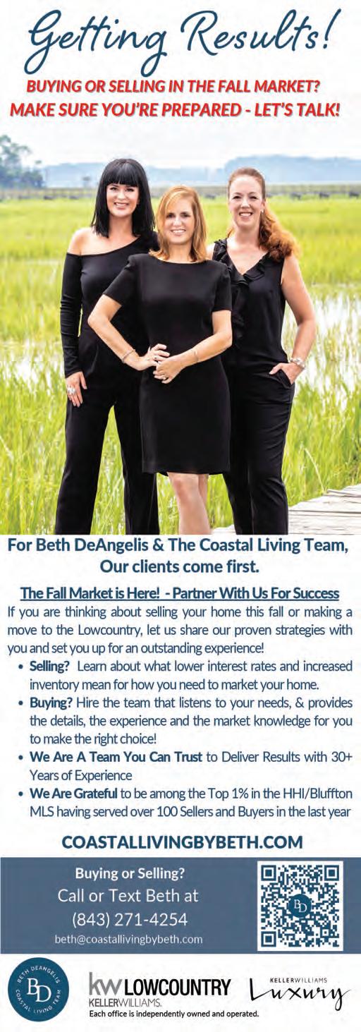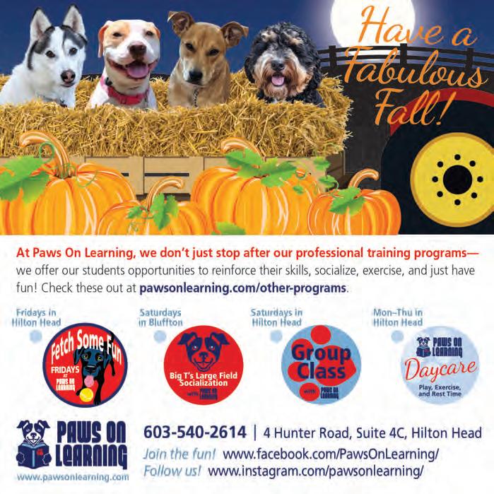 The Town of Hilton Head Island also kicks off its salute to arts and music in October, with Crescendo, a month-long celebration of culture. Barry Kaufman gets the dish from Director of Cultural Affairs Natalie Harvey about the exciting lineup of events, culminating with the highly anticipated and very well-attended Lantern Parade on November 23. See page 61. A word to the wise – PLAN AHEAD to attend this year’s Lantern Parade and leave early to account for parking and transportation to the beach. It will be on the Saturday before Thanksgiving again, so it will be a busy traffic day as our visitors arrive for the holiday week. This is always one of my favorite issues, and I’d like to give a shout-out to my sidekick, Jevon Daly, who curated a lot of this content as our famous local musician on staff. Please follow us on Facebook and Instagram for behind-the-scenes videos on a lot of this content, and up to the moment coverage on festivals happening all month. Cheers to all my pumpkin-spiceloving besties! Let’s break out the sweaters and boots and celebrate FALL. (and see Heather Quinn’s article on page 135 for ways to do that!).