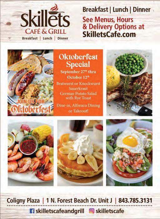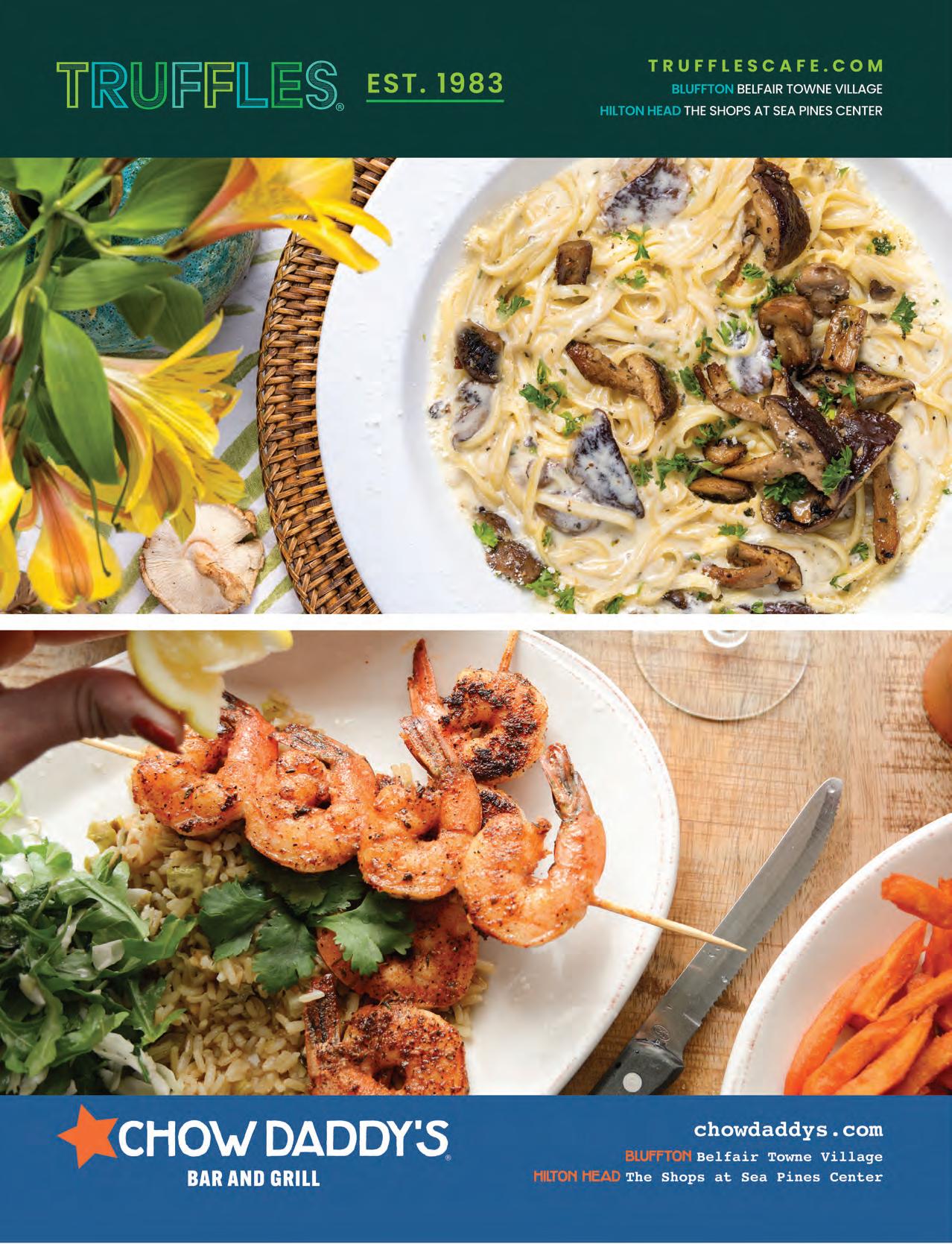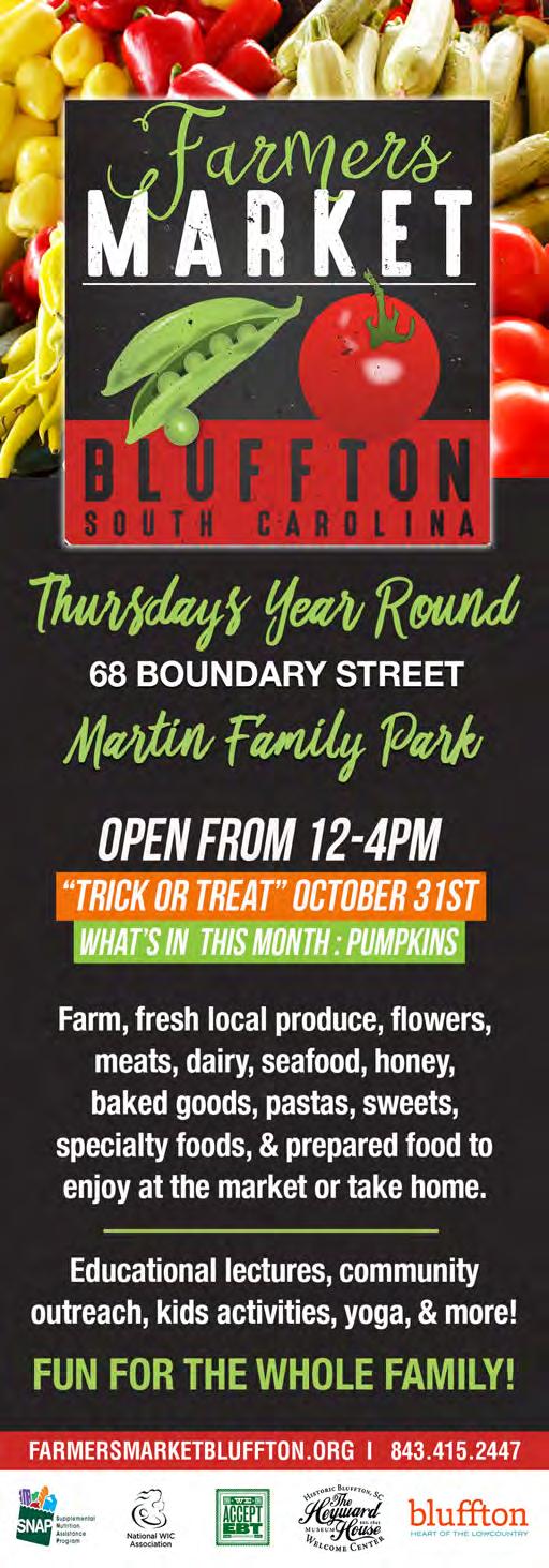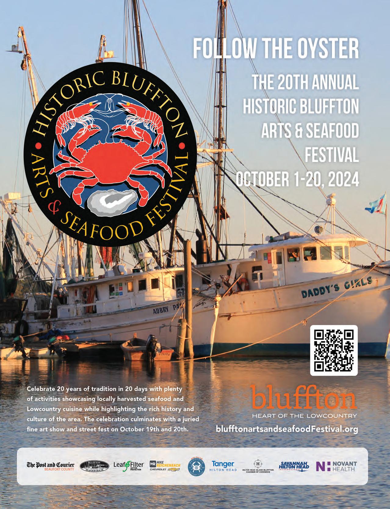 And speaking of fall festivals, we have coverage on a few, including Coligny Plaza’s Rock ’n’ Ribs (see page 141) and the 14th annual Italian Heritage Festival (page 145). Let’s not forget Bluffton’s big Arts & Seafood Festival, happening this month. Check out their ad to the right.