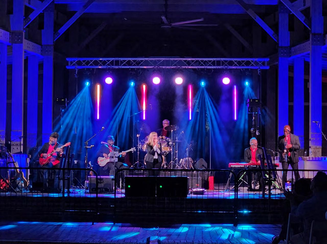 The Disco Tekniks aim to transport audiences back to a time when bell-bottoms were in vogue and the dance floor was a place of pure joy. The group is composed of local musicians Greg and Robin Ross on keyboards and vocals, a funky horn section manned by alto sax player Dave Skinner, tenor sax by Richie Dee, Billy Howe on trumpet, Bill Gwynne on trombone, and percussionist Juan Buzo, with Paul, Alina and Davy Haddad from Fred Astaire Dance Studio Hilton Head on the dance floor.