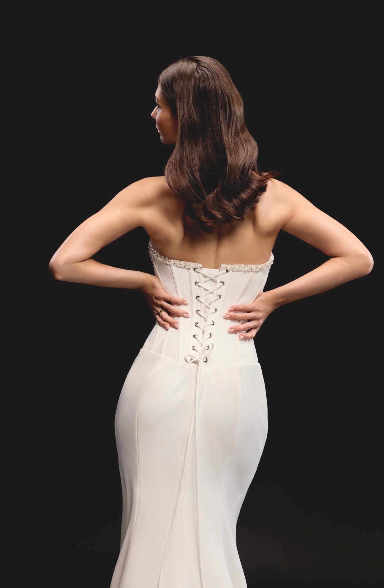 The season’s star, the wild Rose whimsically dégrades over exaggerated veils, sculpted bodices, and full tulle skirts. The effect is overthe-top, luxurious and unexpected.