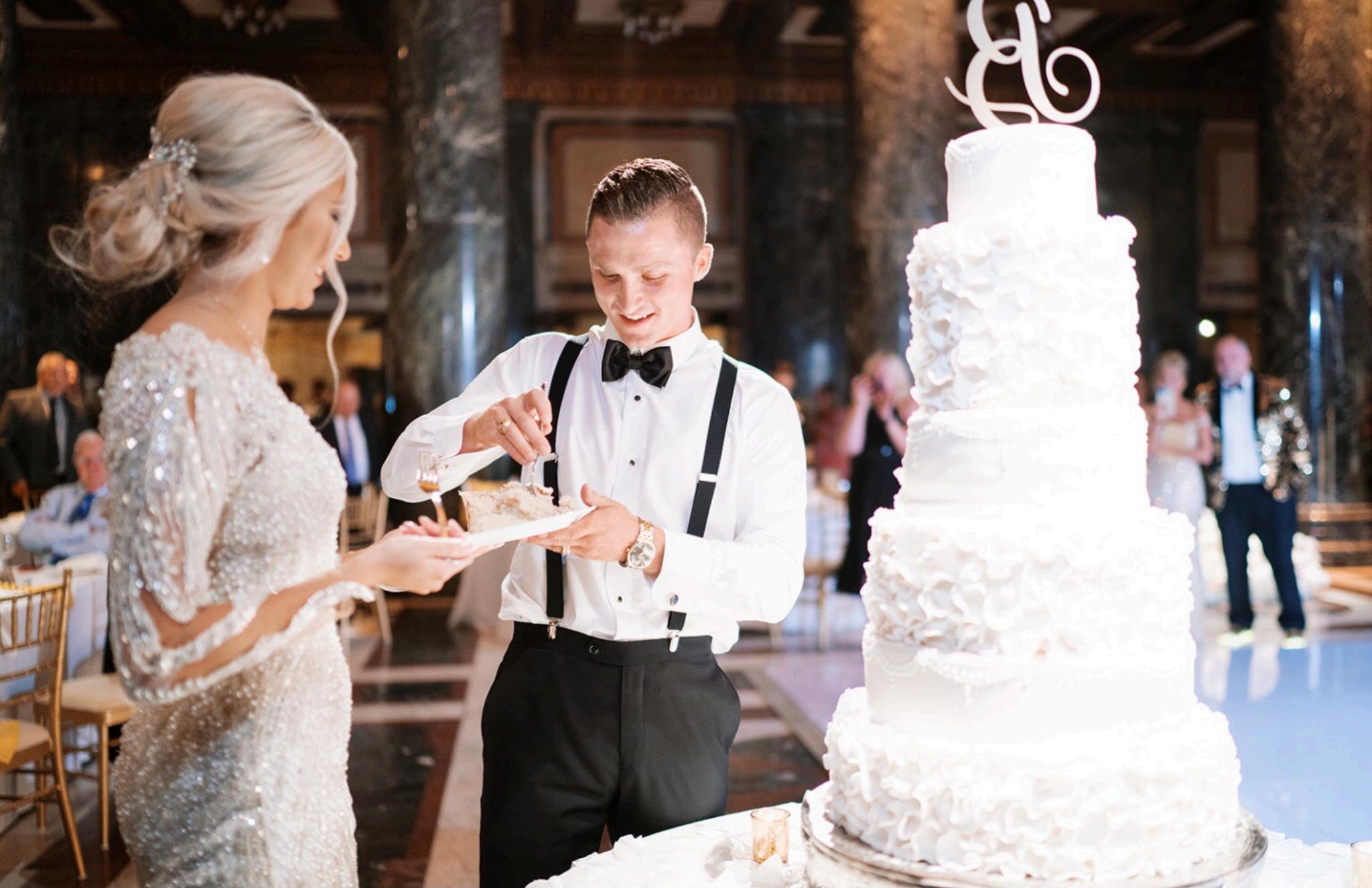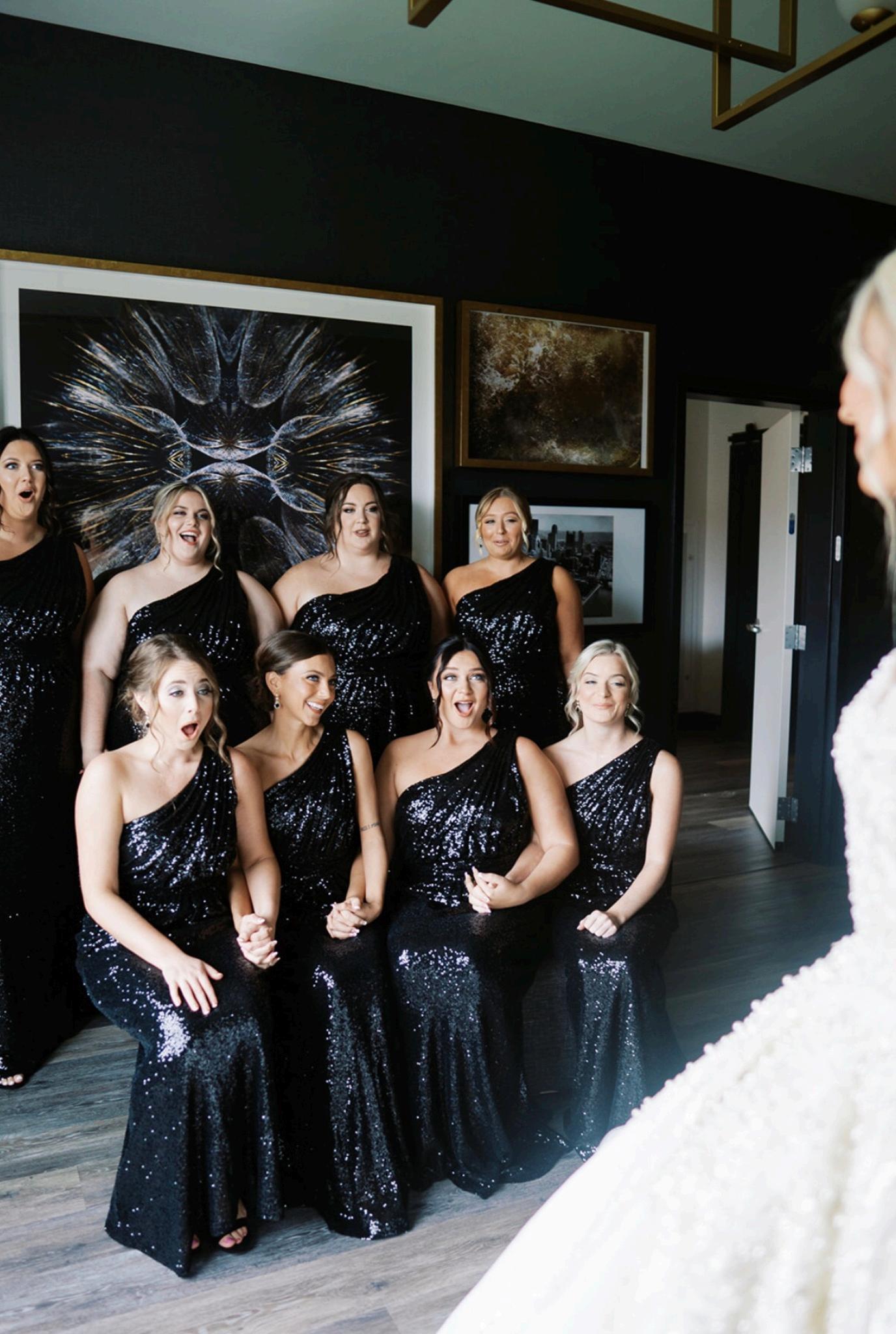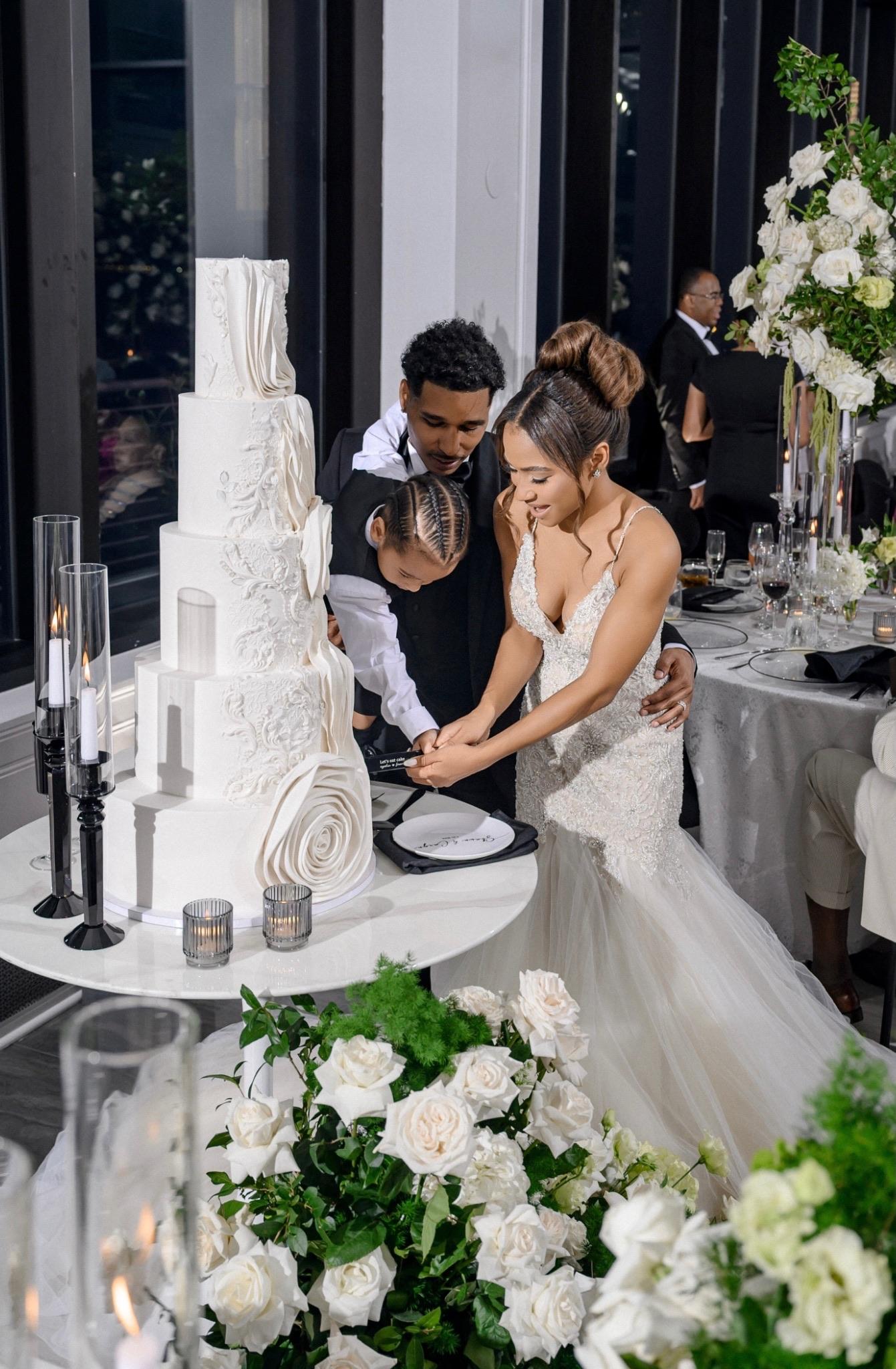 Photography | Videographer: Heatz Films | Content creator: So Bridal Social | Planner & designer: Elle Audrey Events | Decor, floral favors: Distinctive Event Design | Favor cart: Evolution Event Rentals | Venue: Hudson House, Hyatt Regency Jersey City | Hair: Solsik Hair, Shuggy Style, Beauty by Pashka | Makeup: Makeup by Jennifer | Skincare: Gee Beauty, Nicole Marie Aesthetics, Haus of Wax | Nails: Julee Art Studio | Fashion: Molle Bridals, Casablanca, Bridal Reflections, Stephen Yearick, Nadine Merabi, Rene Caovilla, Moda Glam Boutique, Tony Bianco, Gino Vitale, The Black Tux, Nordstrom, Azazie, Kvitka Official, Celine | Perfume: Chanel Eau Tendre | Invitations: Boxed Wedding Invitations | Stationery: SGH Creative | Event signage: Socially Scripted | Dance floor: Go to SHOUT! | Entertainment: DJ First Choice, DJ Royal NYC, The Sax Guy | Live painter: Eric Soller Fine Art | Custom fabrication: Evolution Event Rentals | Confessional booth: Luxor Wedding Films | Linens: The Finishing Touch Luxury Linens | Cake: Sweet Touch by Iva | Photo booth: Firework Photobooth Co. | Officiant: Weddings by Aretha | Suite decor: Popp’n Popout Balloons | Sparkles & smoke: Finer Touch Entertainment | Butterfl y release: NJ Wedding & Event Planner