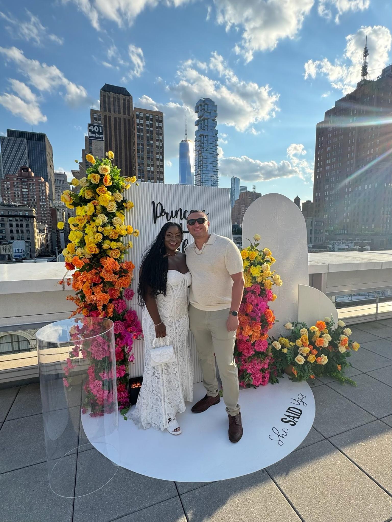 Fast forward to August when Princess and Michael hosted a rooftop engagement party at Cubico Soho in NYC, the city where they first met. It was a wonderful night where they got to see their family and friends, bringing everyone together in a tropical-themed event. One of the fun, personal touches they added was a custom Connect 4, a Sip & Solve and Where Were They games. Amid signature cocktails, custom chocolates and Caribbean and American Food and Jamaican and Caribbean music, a good time was had by all, especially Princess’s niece who did a dance-off with the bride-to-be’s dad and brother!