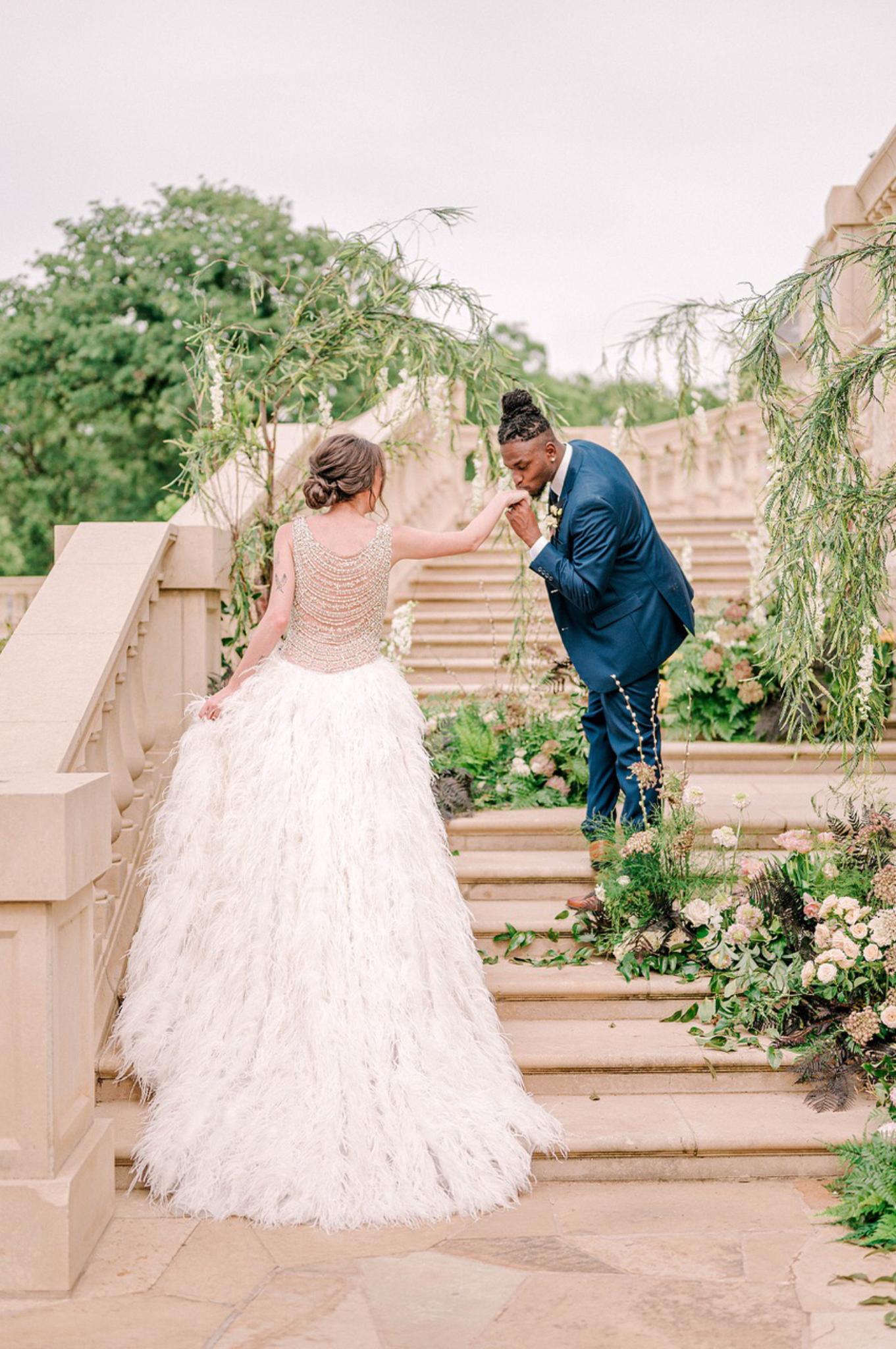 Fashion is a force to be reckoned with where this editorial is concerned. From the exquisite detail on the models’ attire to the car rental that adds a theatrical flair, this is what wedding dreams are made of. Photographed by Maria Kryvobok