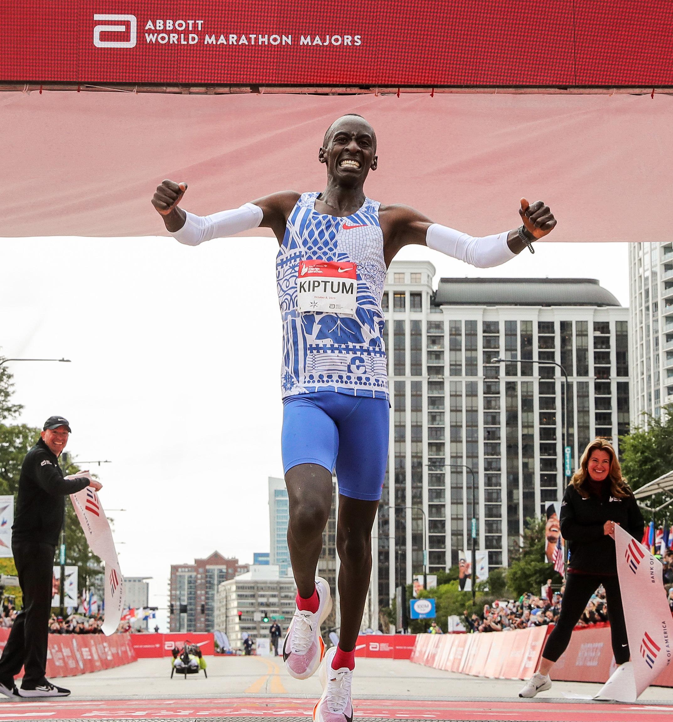 The hope, of course, was for Kiptum to continue the legacy of record-breaking runs in Chicago—from Steve Jones in 1984 (2:08.05) to Khalid Khannouchi in 1999 (2:05:42); Catherine Ndereba in 2001 (2:18:47) and Paula Radcliffe in 2002 (2:17:18) to Brigid Kosgei in 2019 (2:14:04).