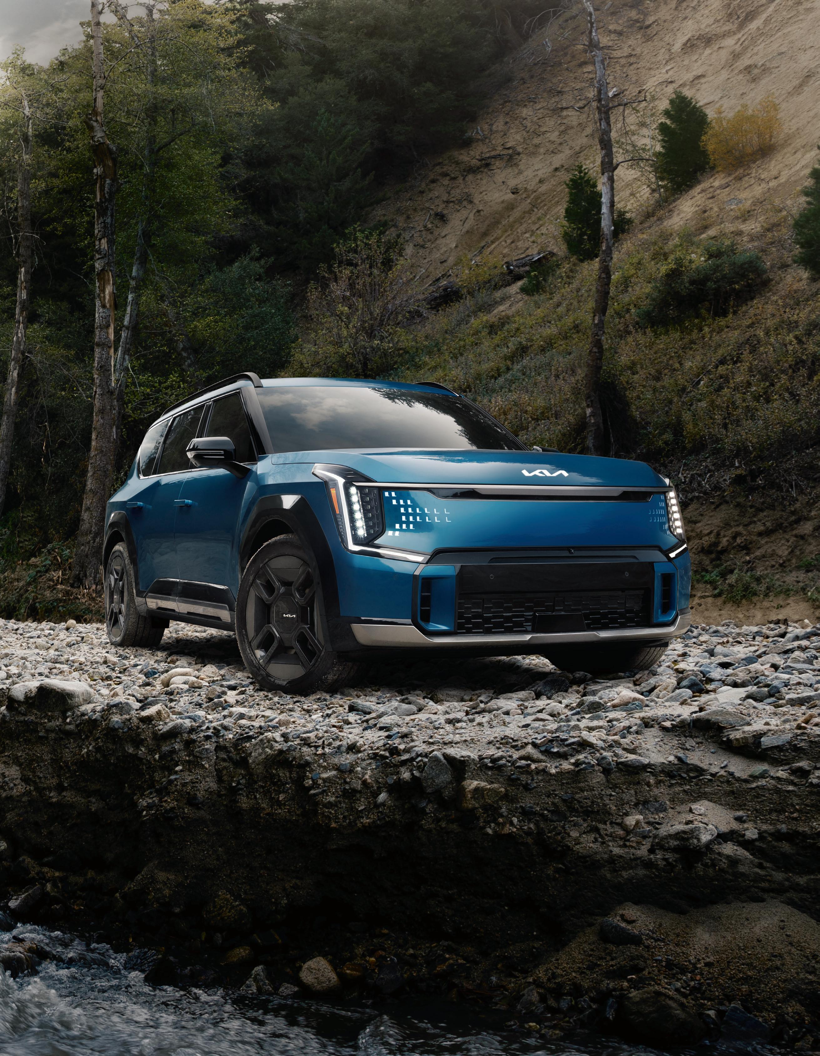2 Kia EV9 vehicles leading the 2023 Bank of America Chicago Marathon field, reducing the overall emissions of the event