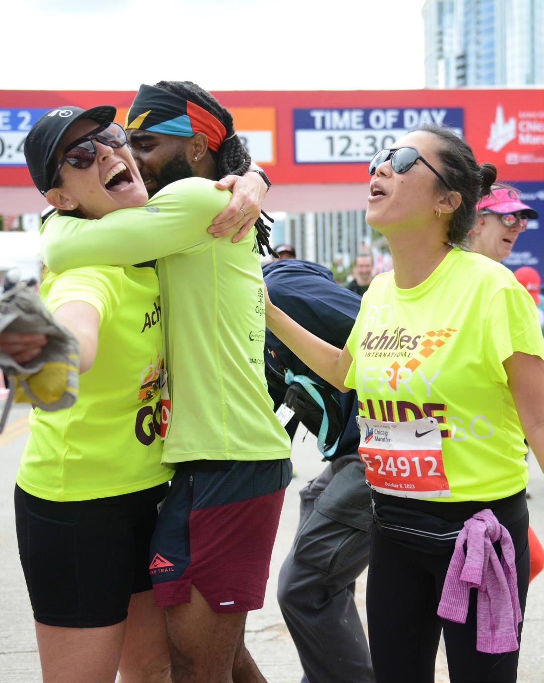 As he approached the finish line, Kiptum knew what he was about to accomplish. He waved to the crowd, pumped his fists and blew kisses. As he blew through the finish line tape, he raised his arms and kept going, leaping into Pinkowski’s arms.