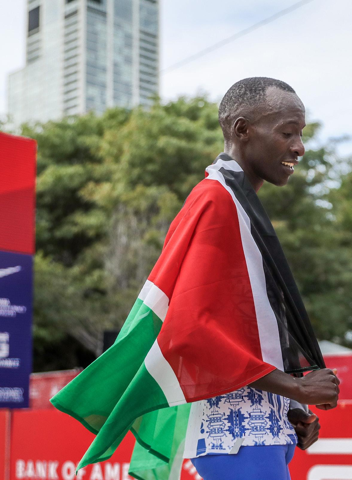 Kiptum had just come within 36 seconds of the twohour mark, all by himself, in a race that was part of the Abbott World Marathon Majors. “You just sort of thought, ‘Wow, we’re so close now,’” says Sarah Lorge Butler, a longtime running journalist who covered the 2023 race for Runner’s World magazine. “And you knew it could be him.”