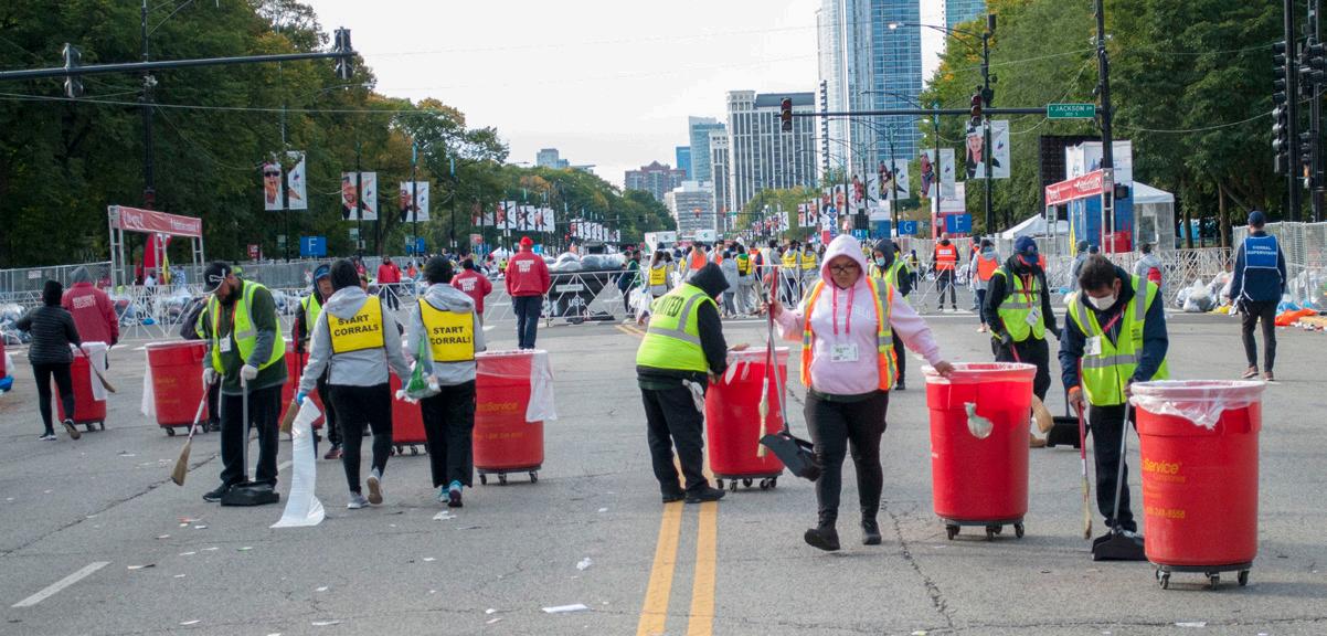 Zero Waste Stations set up in Grant Park at the 2023 Bank of America Chicago Marathon