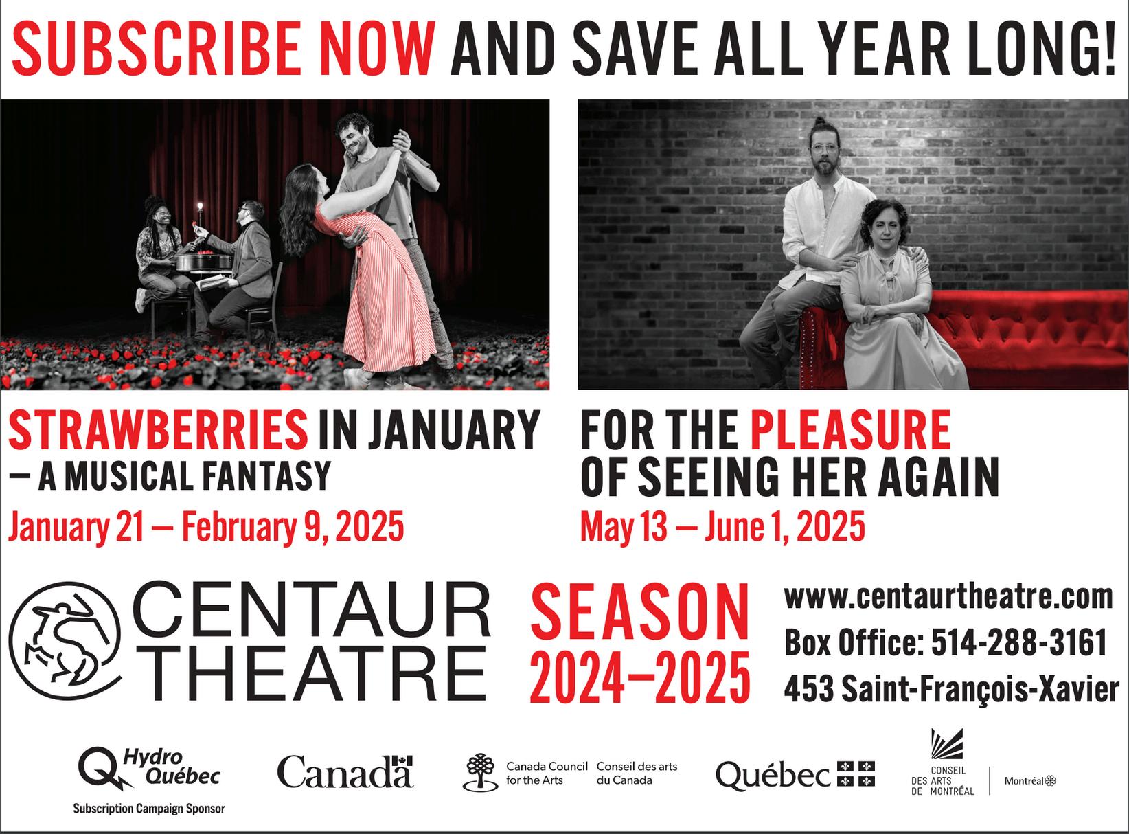 For more information, contact: Haleema Mini, Director of Development haleema@centaurtheatre.com • 514 288-1229 #235