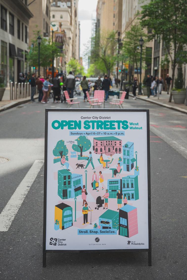 Special acknowledgment to the Center City District operations team whose work makes Open Streets possible includes Faisal Ali, Director of Facilities and Parks Operations; John Crichton, Senior Manager of Public Safety Operations; Aaron Walters, Senior Manager, Park and Facilities Operations; Terrence Keene, CSR Outreach Manager.