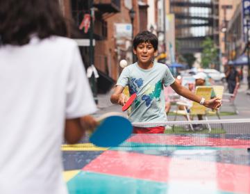 Oversized versions of familiar games — including giant chess, Connect Four, cornhole, and ping-pong — transformed the street into a playful, shared environment. These activities were accessible to all ages, easily movable, and required little instruction, reinforcing the spontaneous and low-barrier nature of the experience.