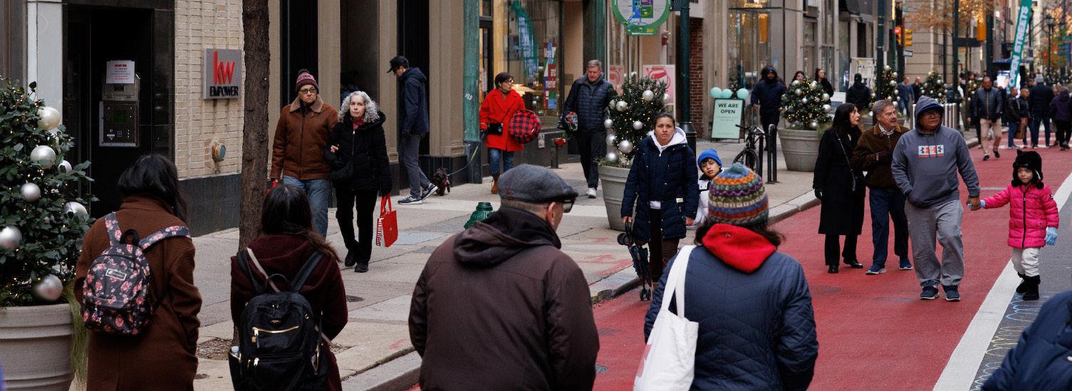In 2025, Philadelphia was named the most walkable city in America by USA Today's 10 Best Readers' Choice Awards for the third consecutive year. Developed largely before the automobile became dominant, Center City concentrates residential towers, office buildings, restaurants, shops, arts institutions, and services on a compact, flat footprint, with interwoven land uses that would be nearly impossible to create from scratch today. Ground-floor retail and restaurants keep sidewalks animated and interesting, and Center City District's on-street teams provide cleaning, public safety, homeless outreach, and hospitality services that make those sidewalks comfortable and inviting for everyone.