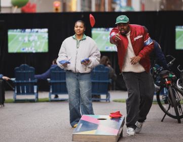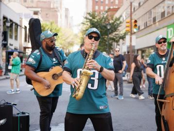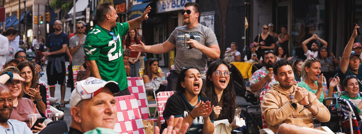 Philadelphia is a city proud of its deep roots in music, the creative arts, and of course, sports. Engaging local performers — from violinists and dancers to stilt walkers — introduced moments of surprise and warmth along blocks more commonly defined by traffic. These performances helped create a welcoming atmosphere while showcasing local talent in an everyday civic setting. And if it’s Eagles season, there’s something special about bringing people of all ages together to watch a game, in the middle of a car-free street.