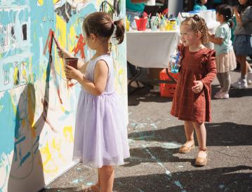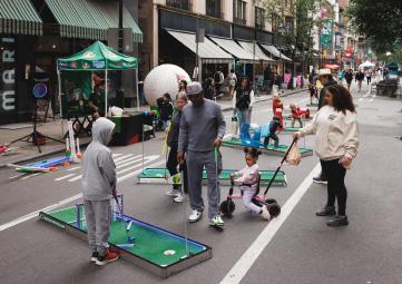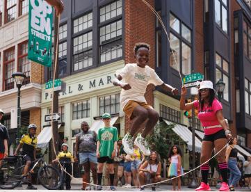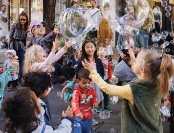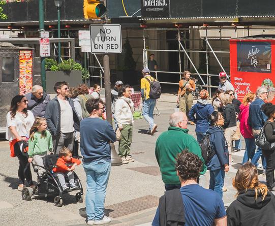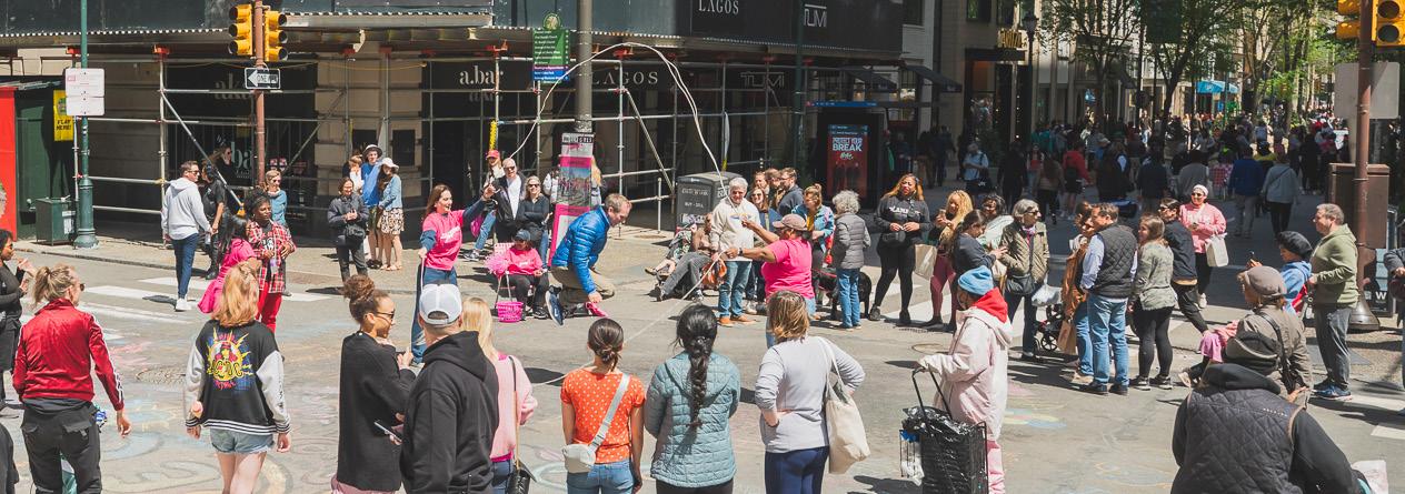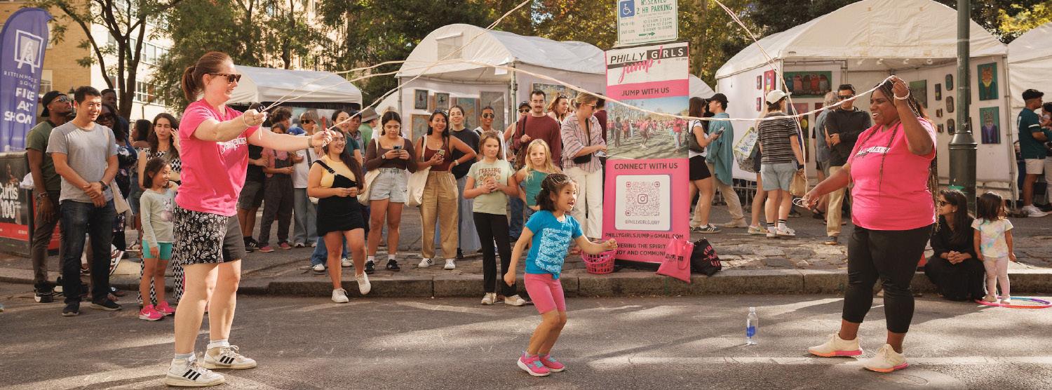 For all that Center City offers, safe and accessible outdoor activities for children can be difficult to find. A car-free street reduces stress for parents and caregivers while creating space for simple, creative engagement, from magical bubble performances and paint-bynumber installations to jump-rope sessions led by local groups such as Philly Girls Jump.